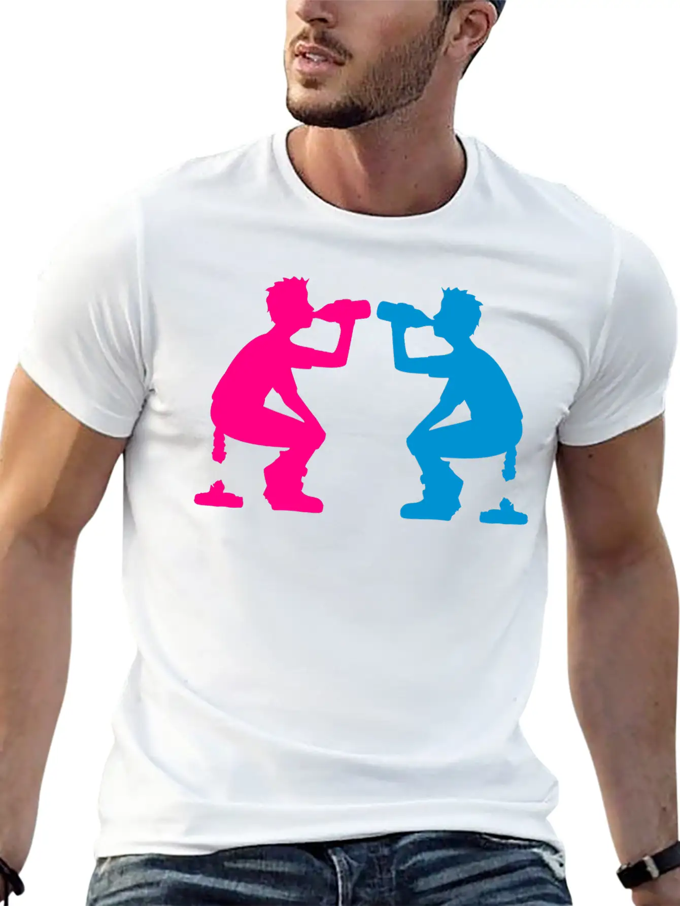 This T-shirt features a clean and artistic depiction of the 2 team beer drinking friends alcohol party outside, perfect for everyday casual wear. Soft, breathable cotton.