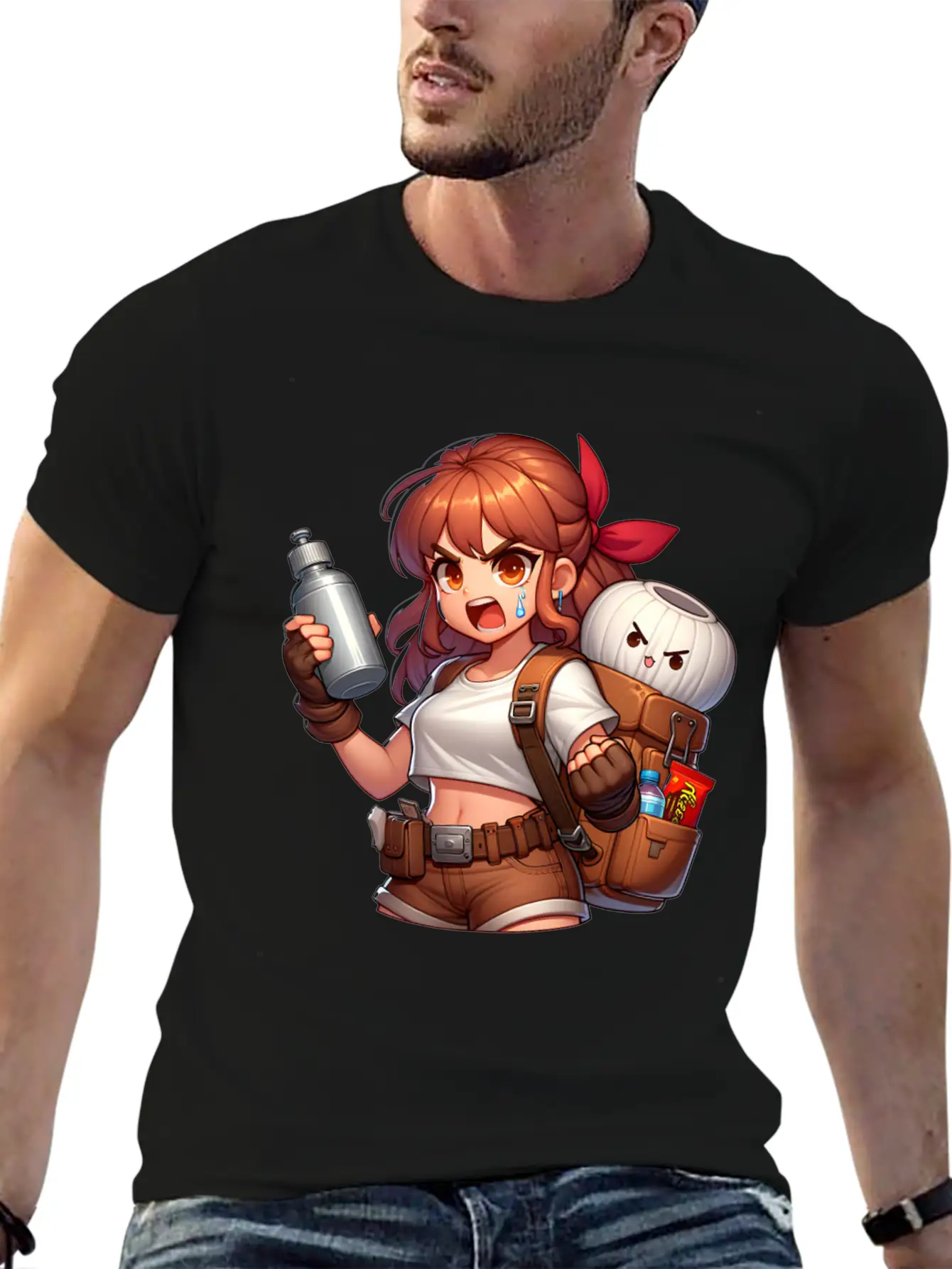 Adventurous Anime Girl Ready For Action Stylish Everyday T-Shirt – Unisex Basic Cotton Tee