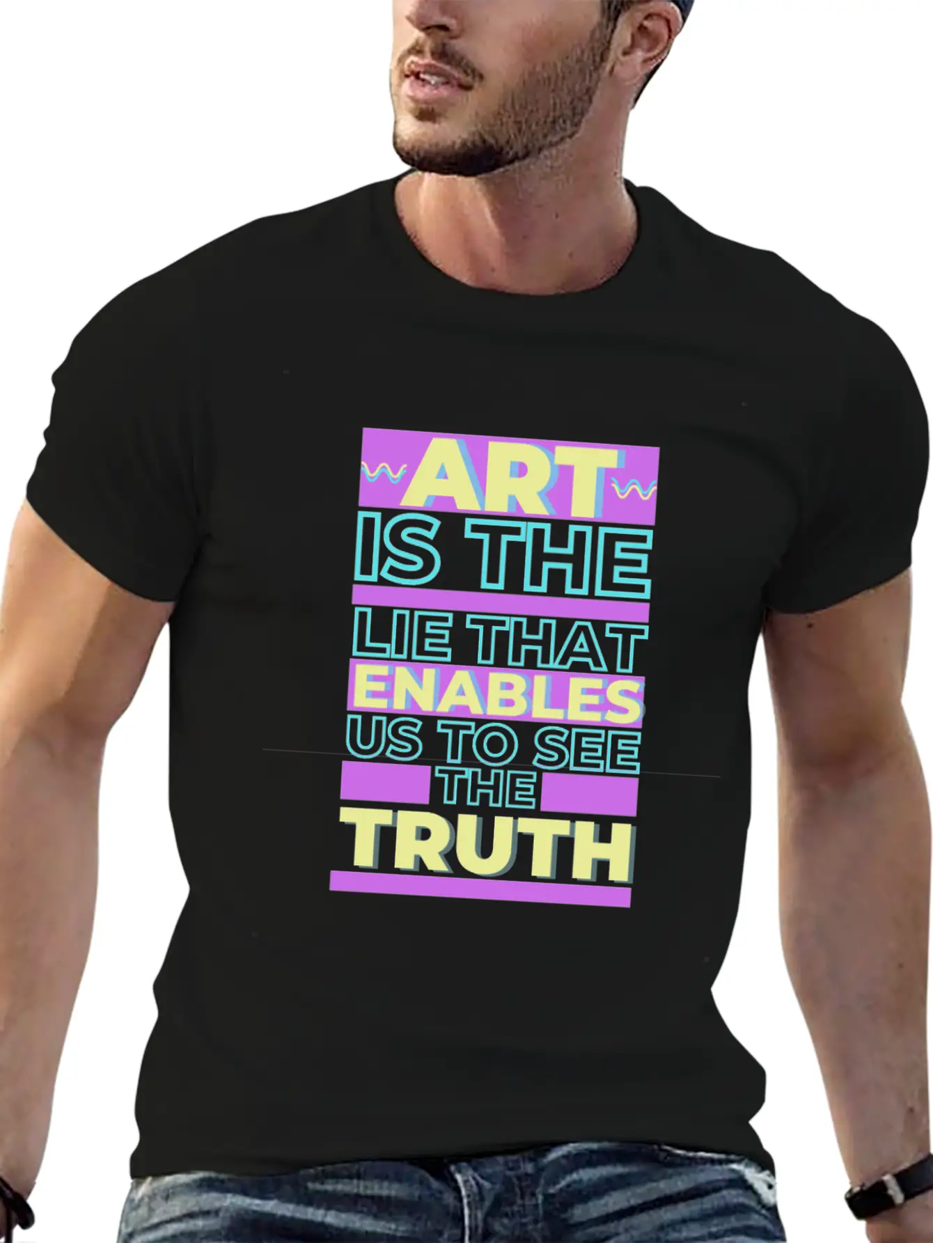 Featuring the ART IS THE LIE THAT MAKES US REALIZE THE TRUTH, this shirt is equal parts expressive and comfortable. Suitable for both men and women.