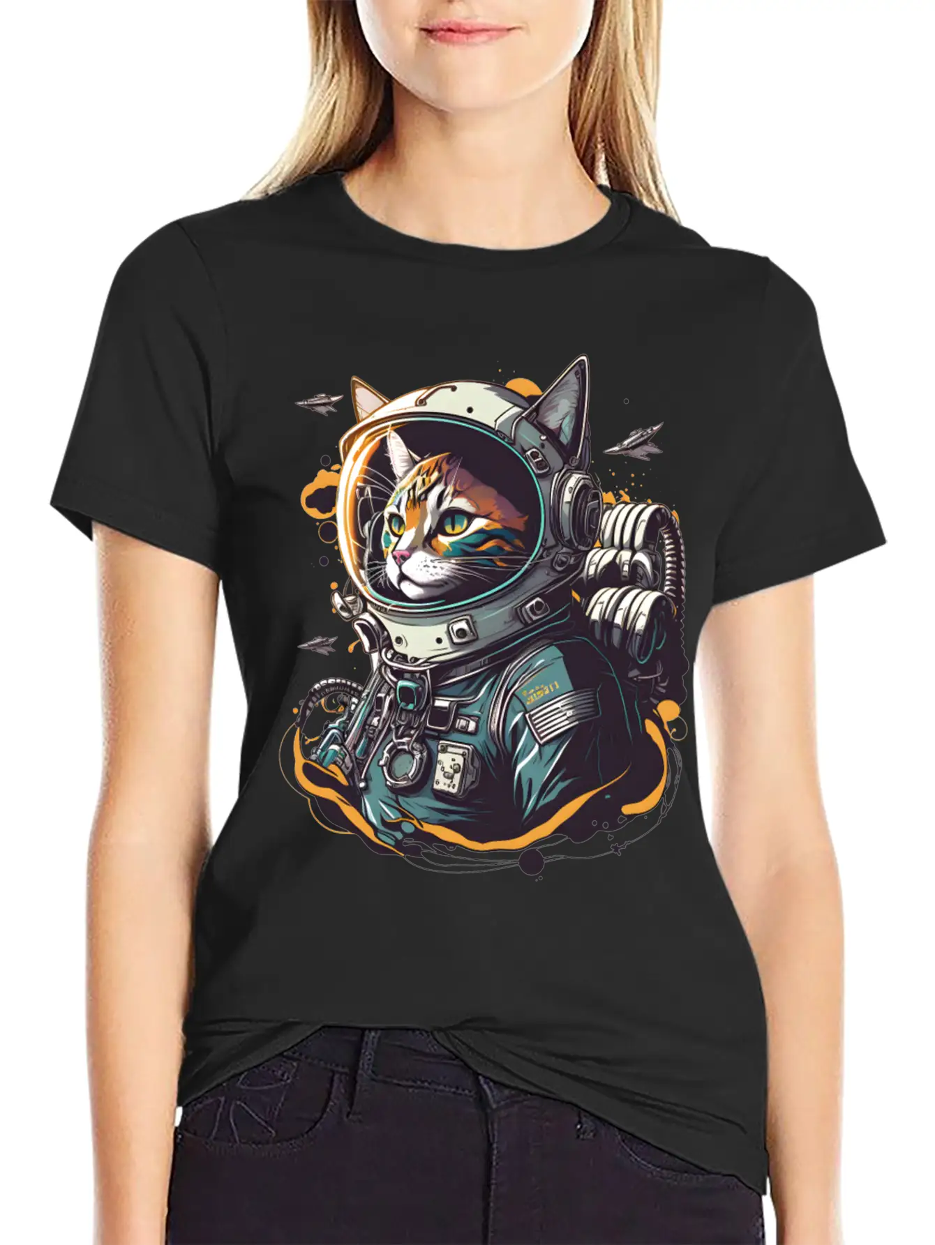 The Astronaut cat is the centerpiece of this comfy tee, combining a classic cut with modern design.