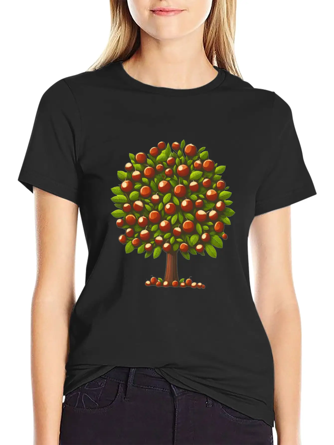 The Autumn Treasures: Deciduous Tree with Chestnuts & design adds character to this everyday tee. Easy to pair with jeans, shorts, or layered looks.