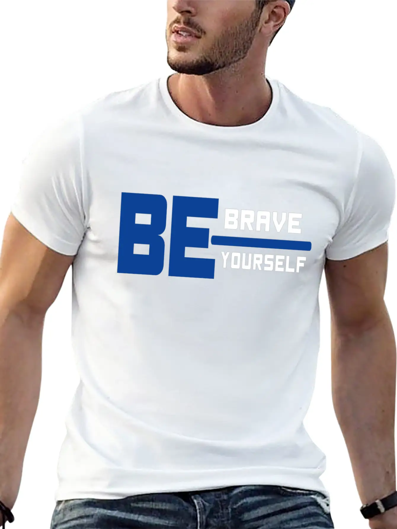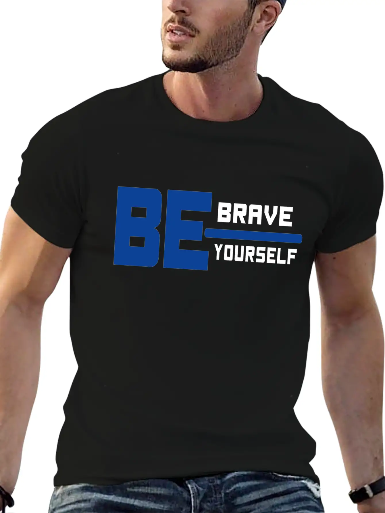 This T-shirt features a clean and artistic depiction of the be brave be yourself, perfect for everyday casual wear. Soft, breathable cotton.