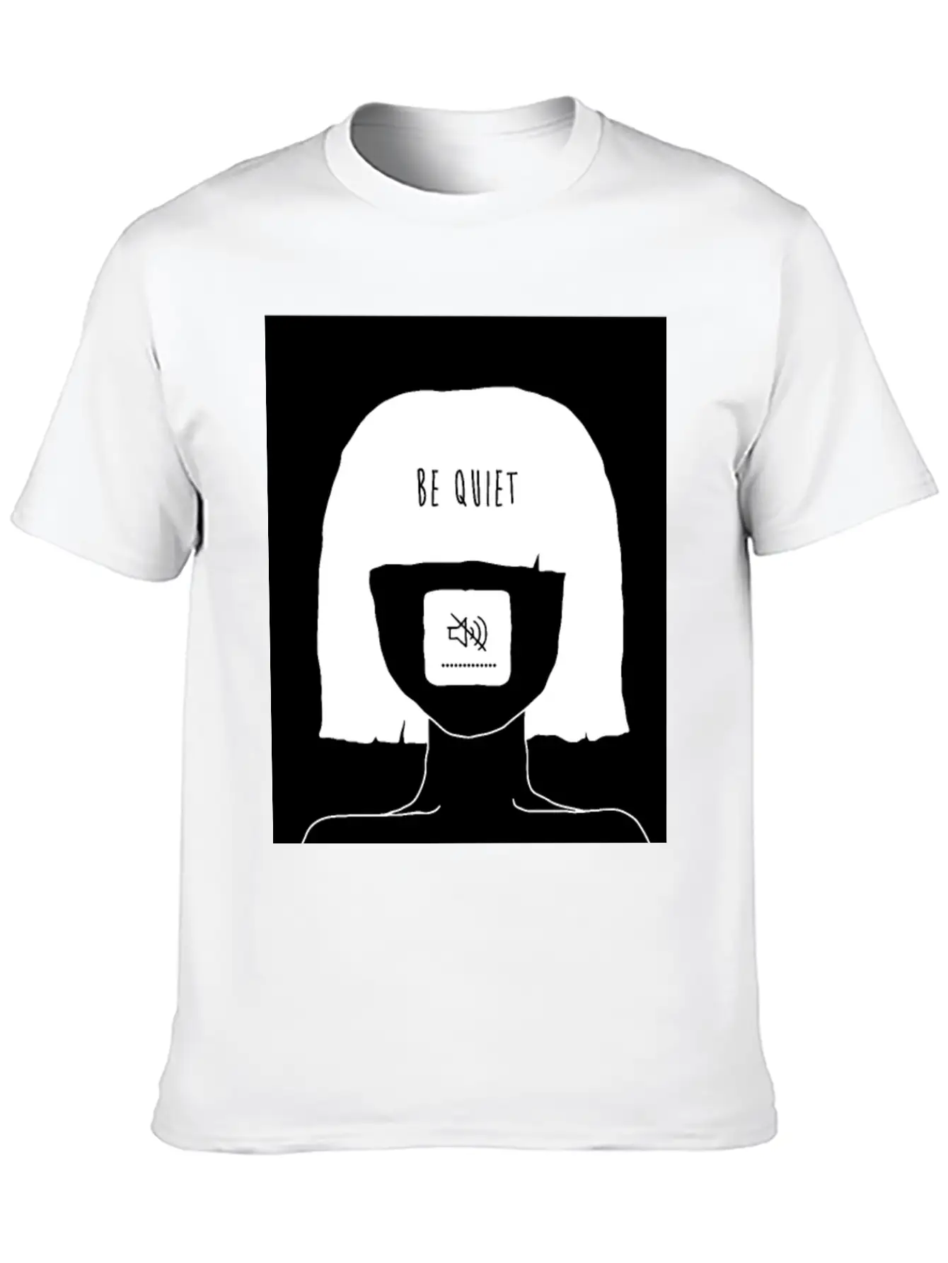 Be Quiet - Muted Mind Poster (black) Simple Everyday Graphic Tee – Lightweight Summer Wear