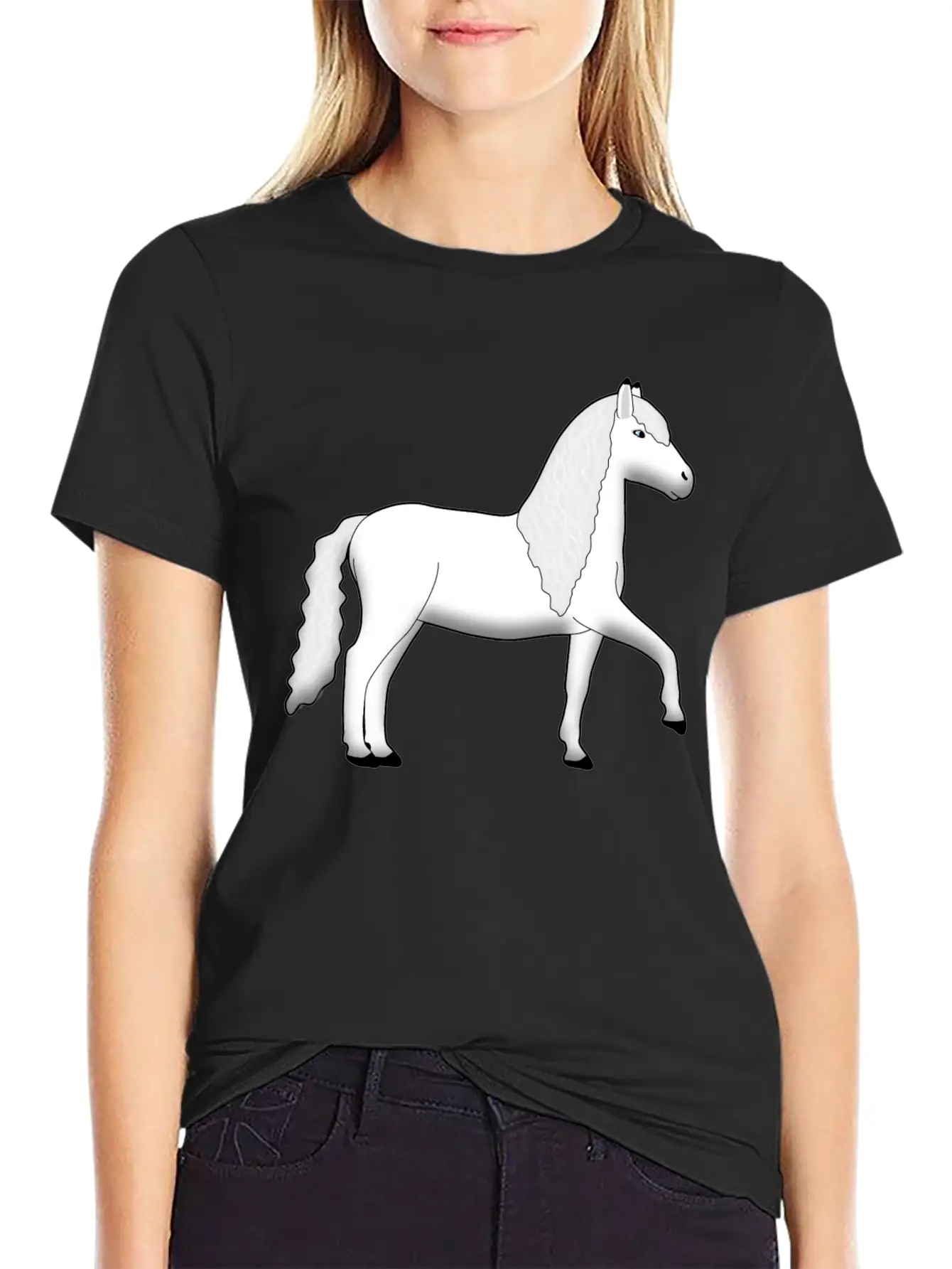 Beautiful White Horse Basic Graphic T-Shirt – Daily Comfort In Soft Cotton