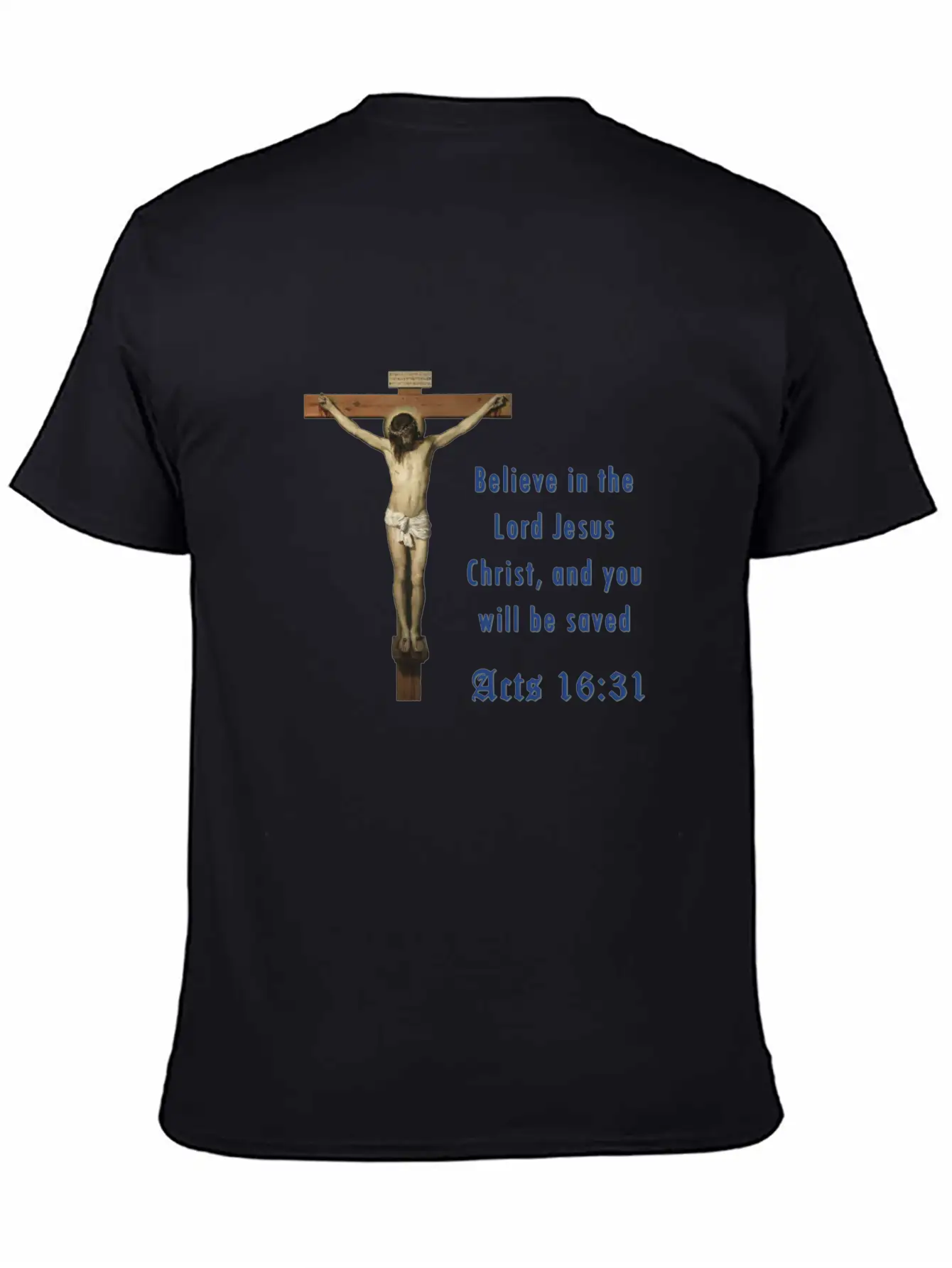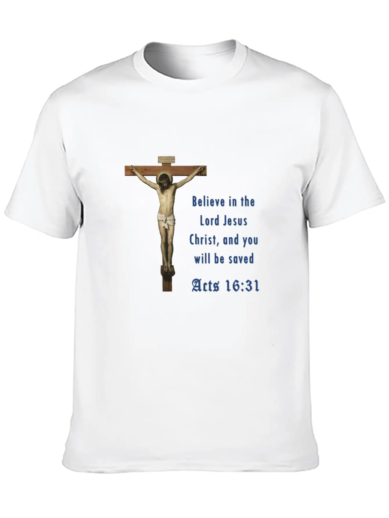 With a unique take on the Believe in the Lord Jesus Christ, and you will be, this shirt is perfect for fans of subtle yet striking design. Cotton comfort guaranteed.