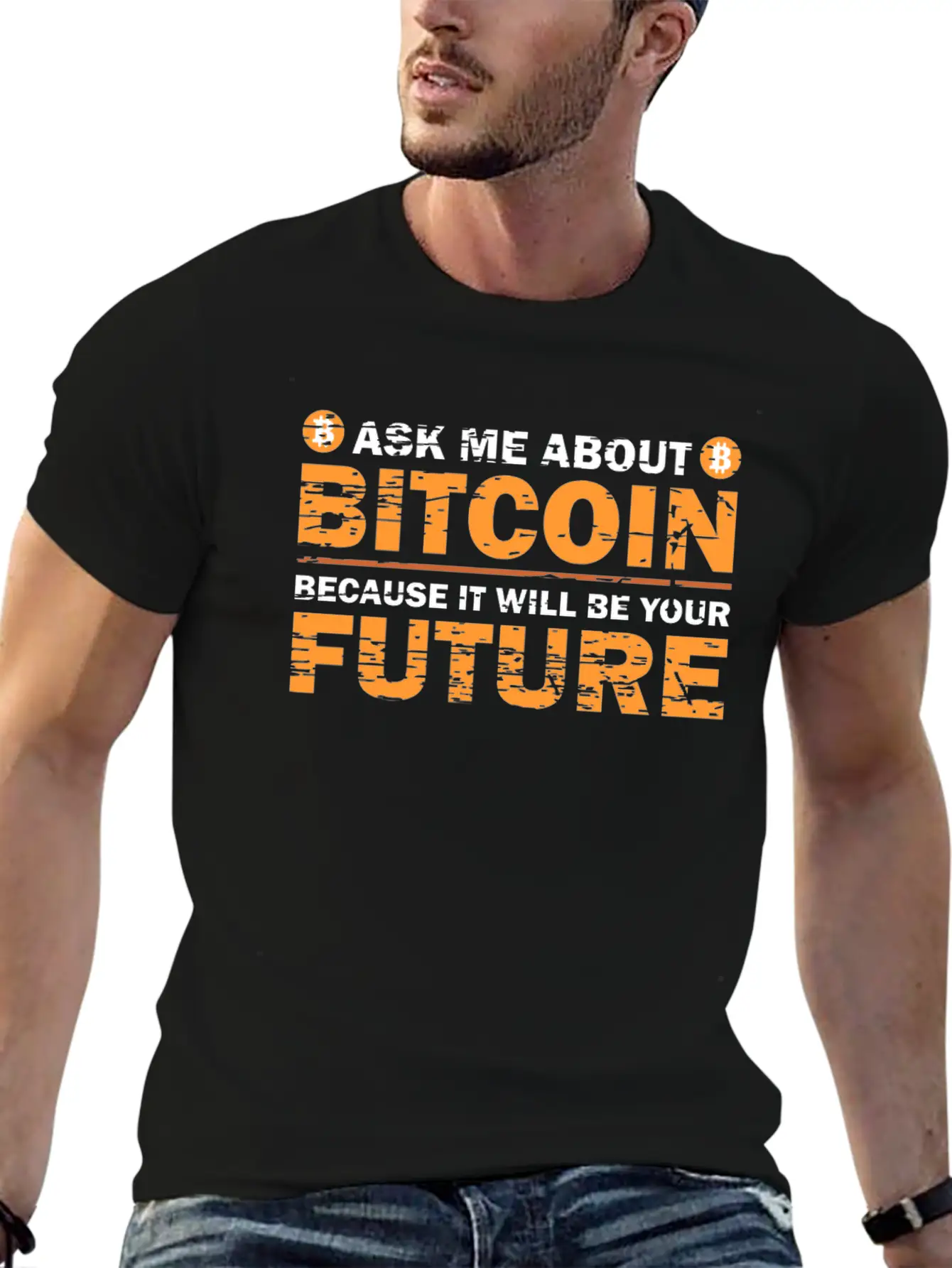 This shirt showcases the Bitcoin Enthusiast in a sleek and subtle way. A must-have for fans of timeless design. Pure cotton feel.