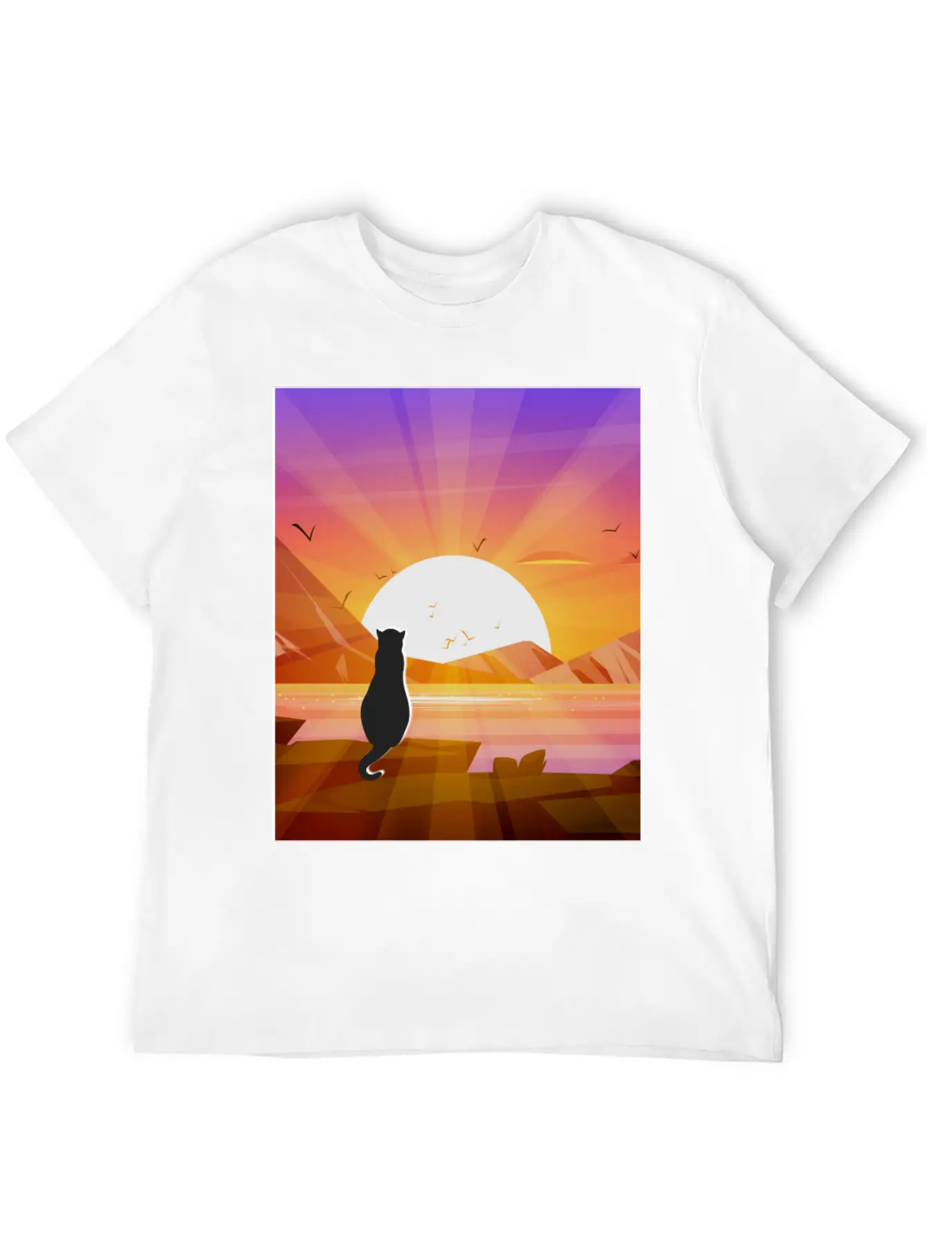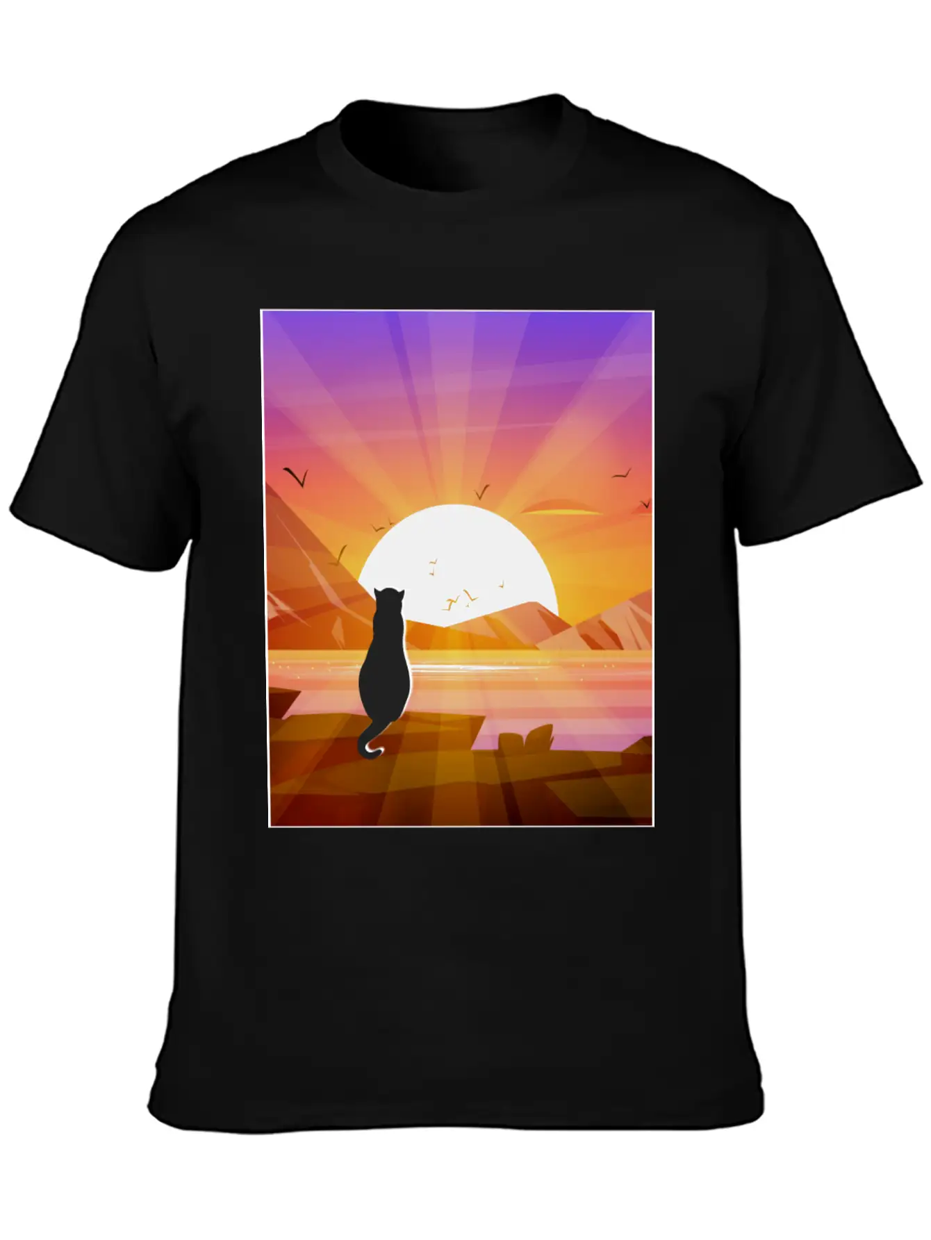 Wear your love for the Black Cat Watching Sunset / Cute Cat Sunset with pride – this shirt is comfy, cool, and full of character.