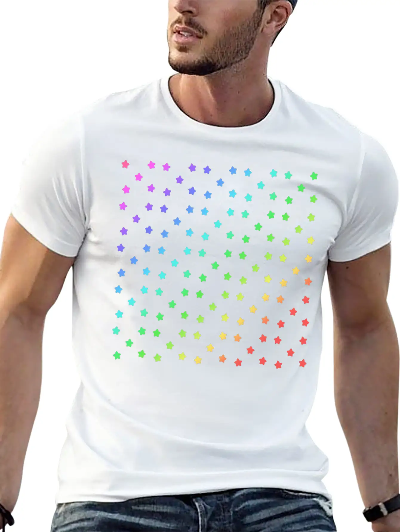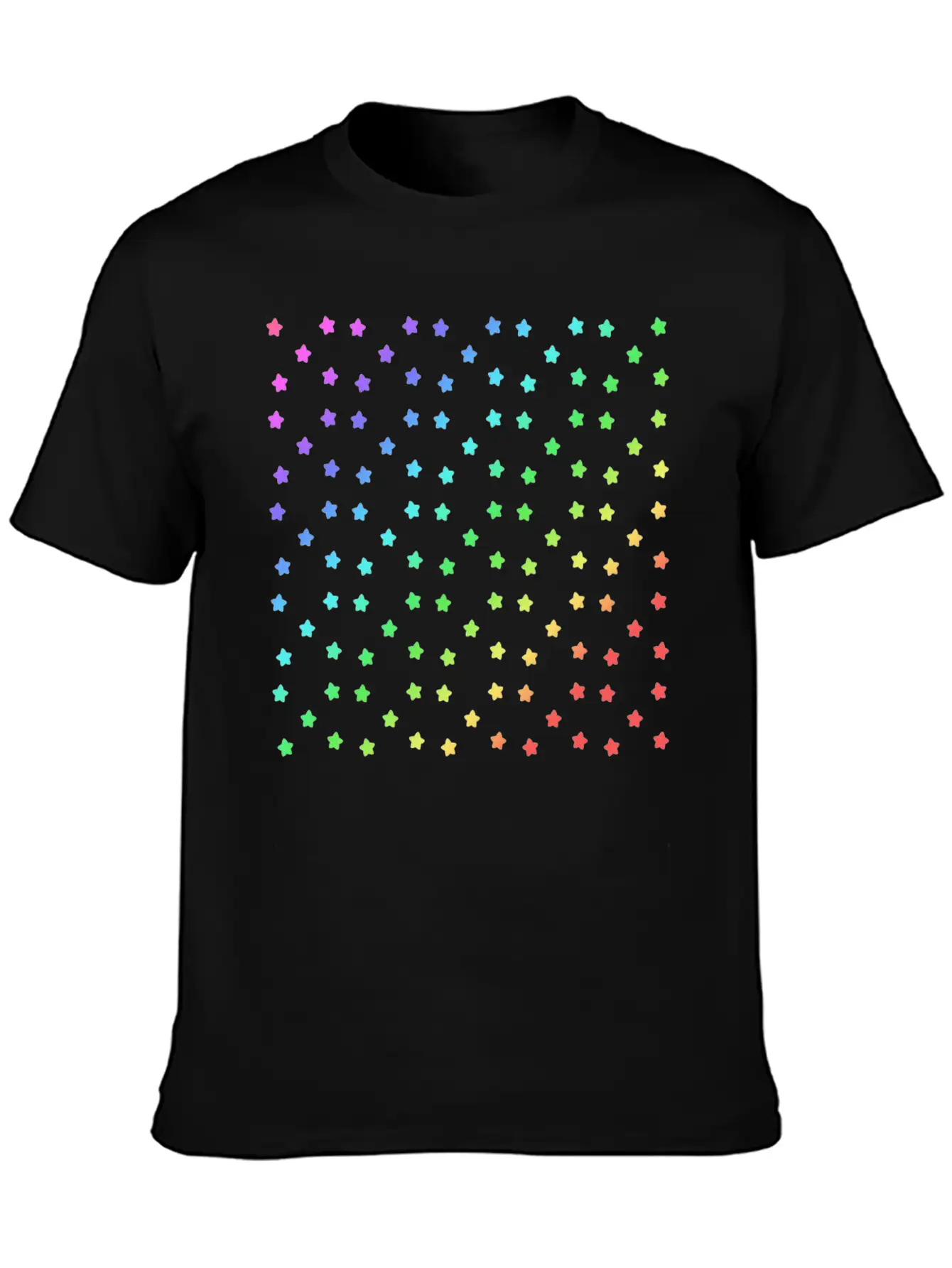Black Rainbow Stars Pattern Green Stylish Everyday T-Shirt – Unisex Basic Cotton Tee