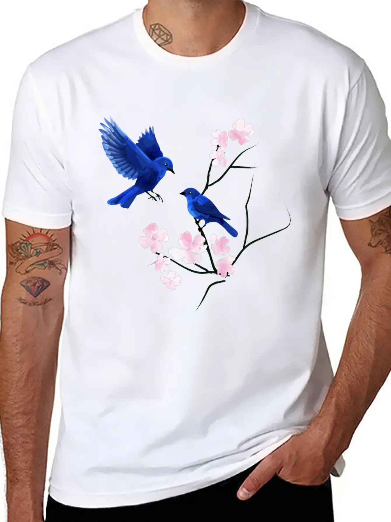 Blue Bird Cherry Blossom Basic Graphic T-Shirt – Daily Comfort In Soft Cotton