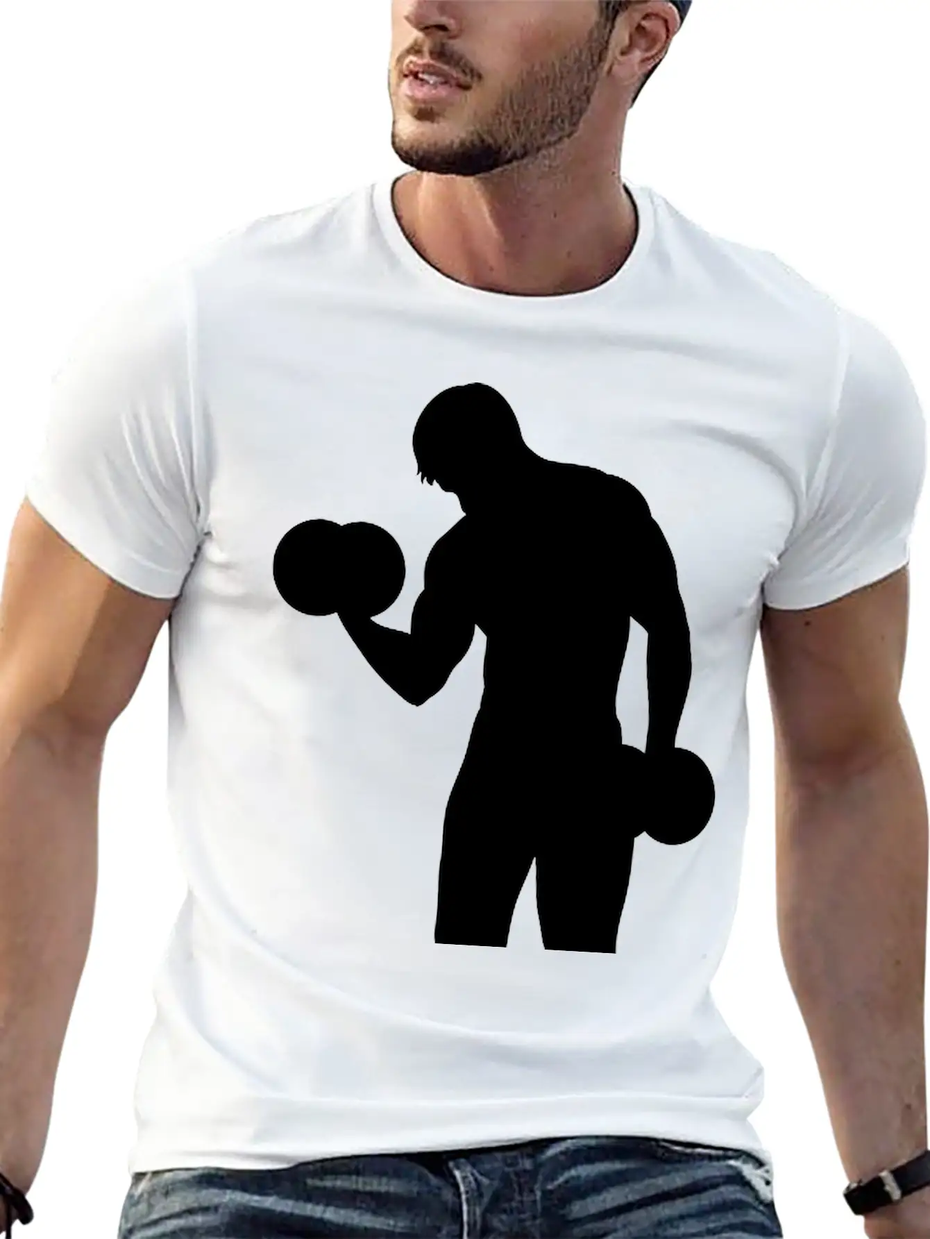 Designed with a bold yet minimal bodybuilder print, this tee brings subtle personality to your wardrobe. Lightweight and comfortable.