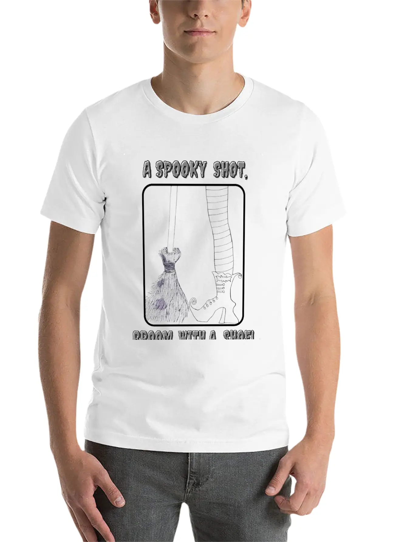 Add a hint of broom and a shoe drawing to your wardrobe with this minimalist graphic tee. Lightweight and perfect for all seasons.
