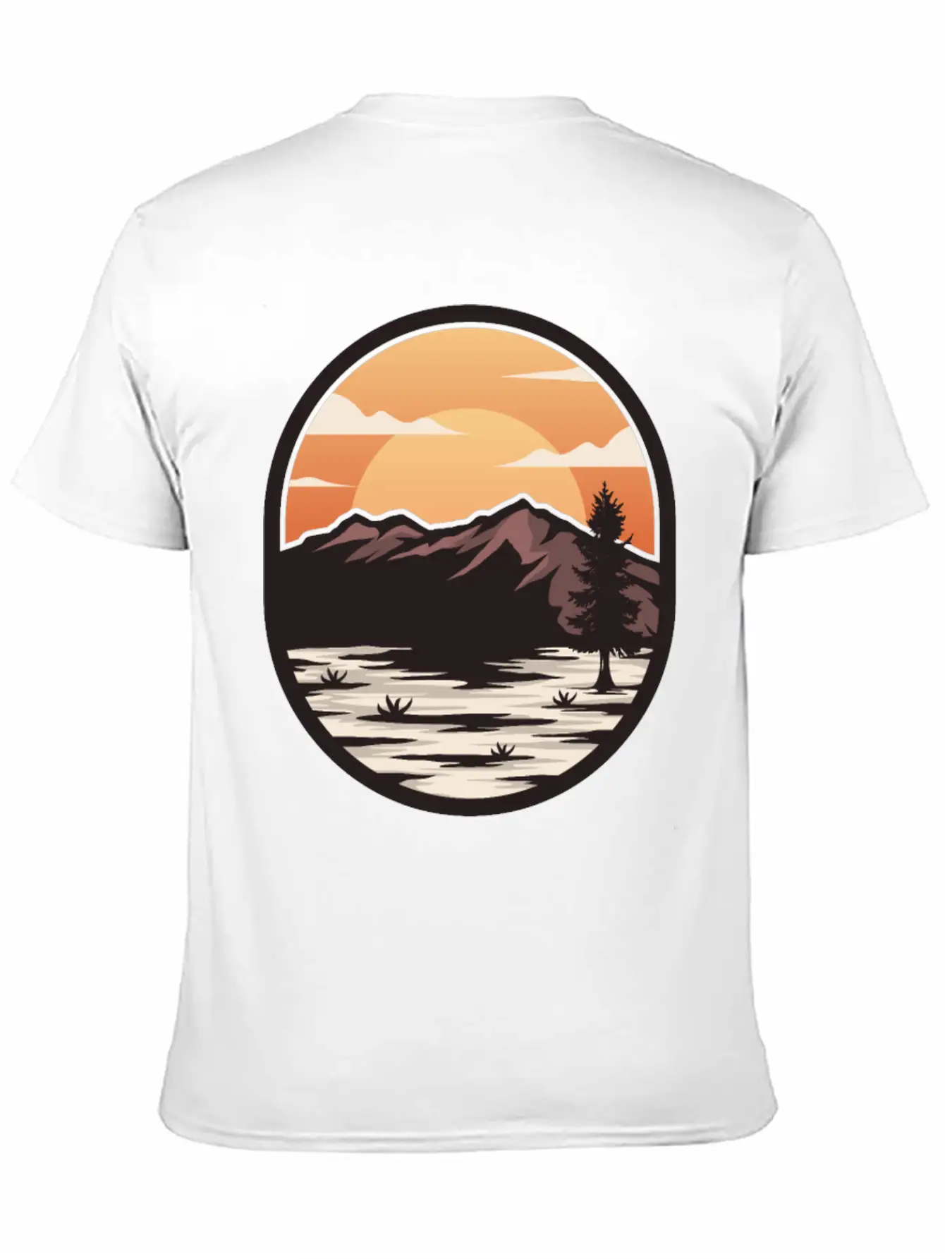 Brown Cream Modern Sunset On The Mountain Stylish Everyday T-Shirt – Unisex Basic Cotton Tee