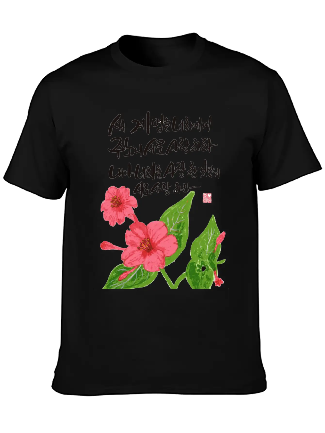 Calligraphy, Beautiful Flowers & Hangeul Stylish Everyday T-Shirt – Unisex Basic Cotton Tee