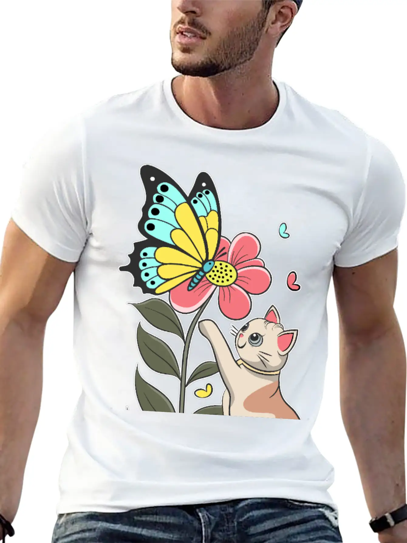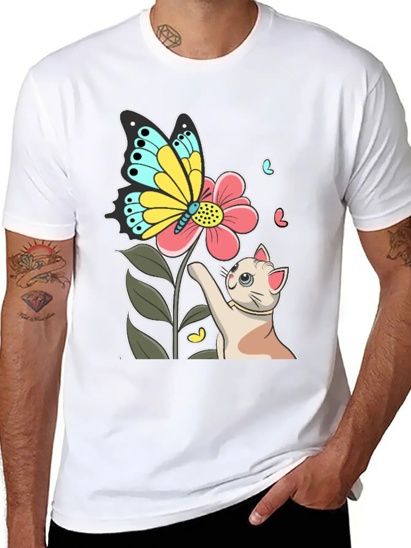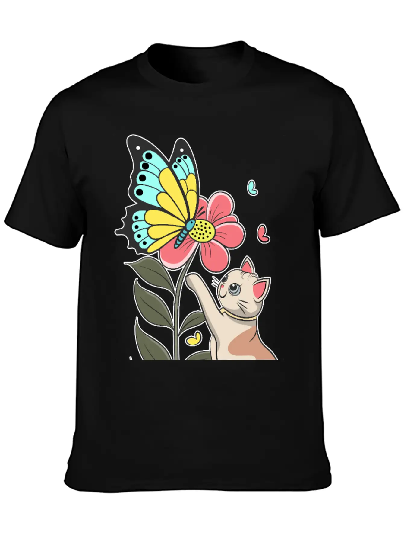 Cat, Flower And Butterfly Stylish Everyday T-Shirt – Unisex Basic Cotton Tee