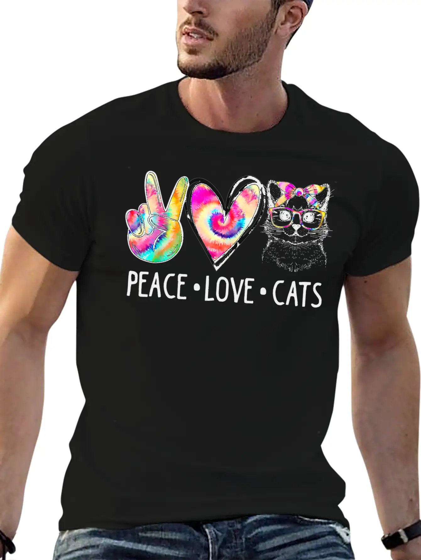 Cat Rescue Adopt A Cat Tie Dye Peace Love Cat Mom Basic Graphic T-Shirt – Daily Comfort In Soft Cotton