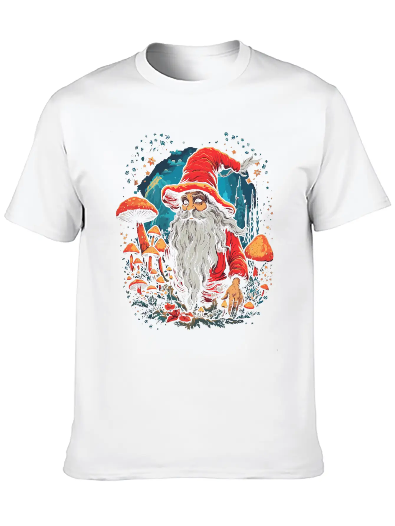 Designed with a bold yet minimal Christmas | Fantasy | Mushroom | Forest | Goa print, this tee brings subtle personality to your wardrobe. Lightweight and comfortable.