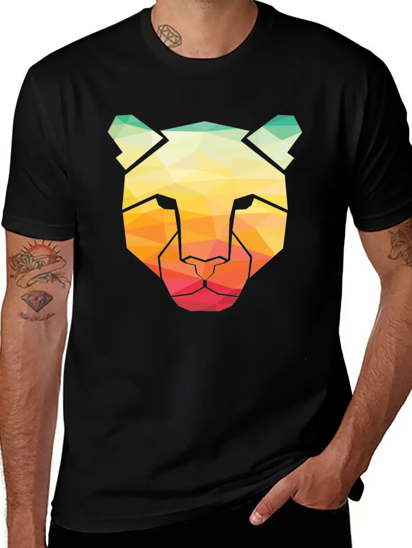 Colorful Geometric Lion Gift Artistic Prismatic Basic Graphic T-Shirt – Daily Comfort In Soft Cotton