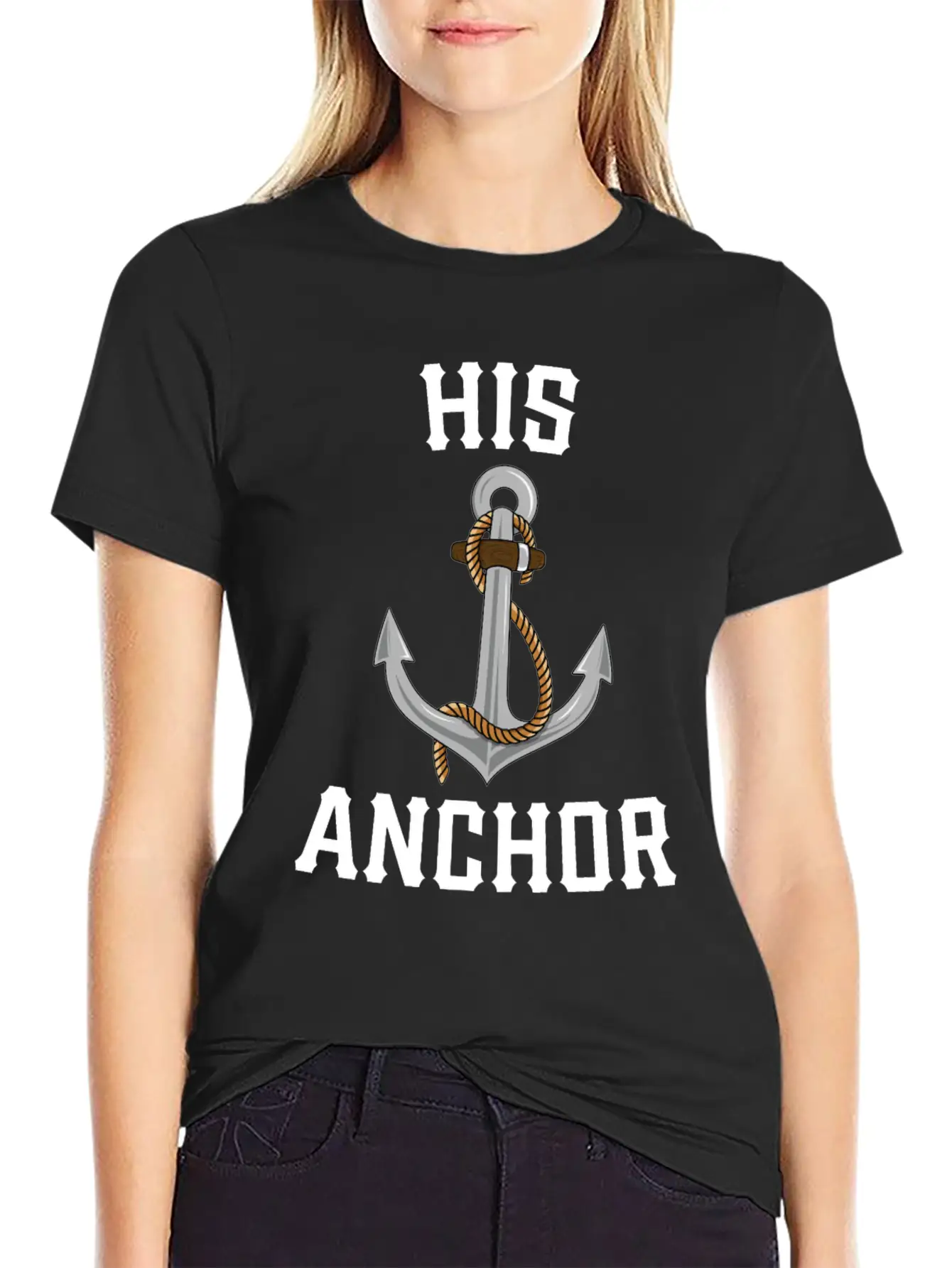 Couples Cruise TShirt For Women His Anchor Aloha Basic Graphic T-Shirt – Daily Comfort In Soft Cotton