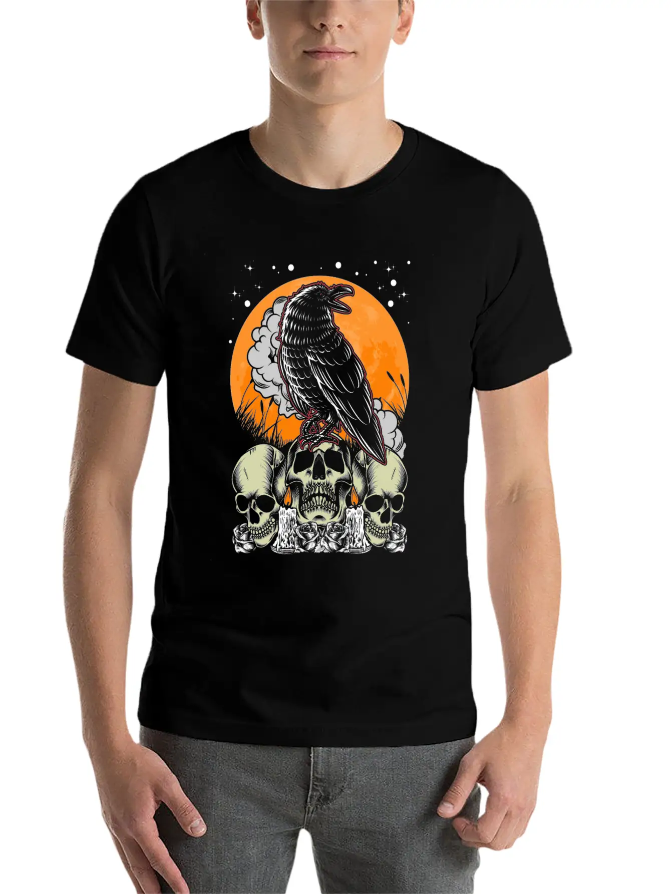 Creepy Crow Gothic Moon Witchy Bird Basic Graphic T-Shirt – Daily Comfort In Soft Cotton