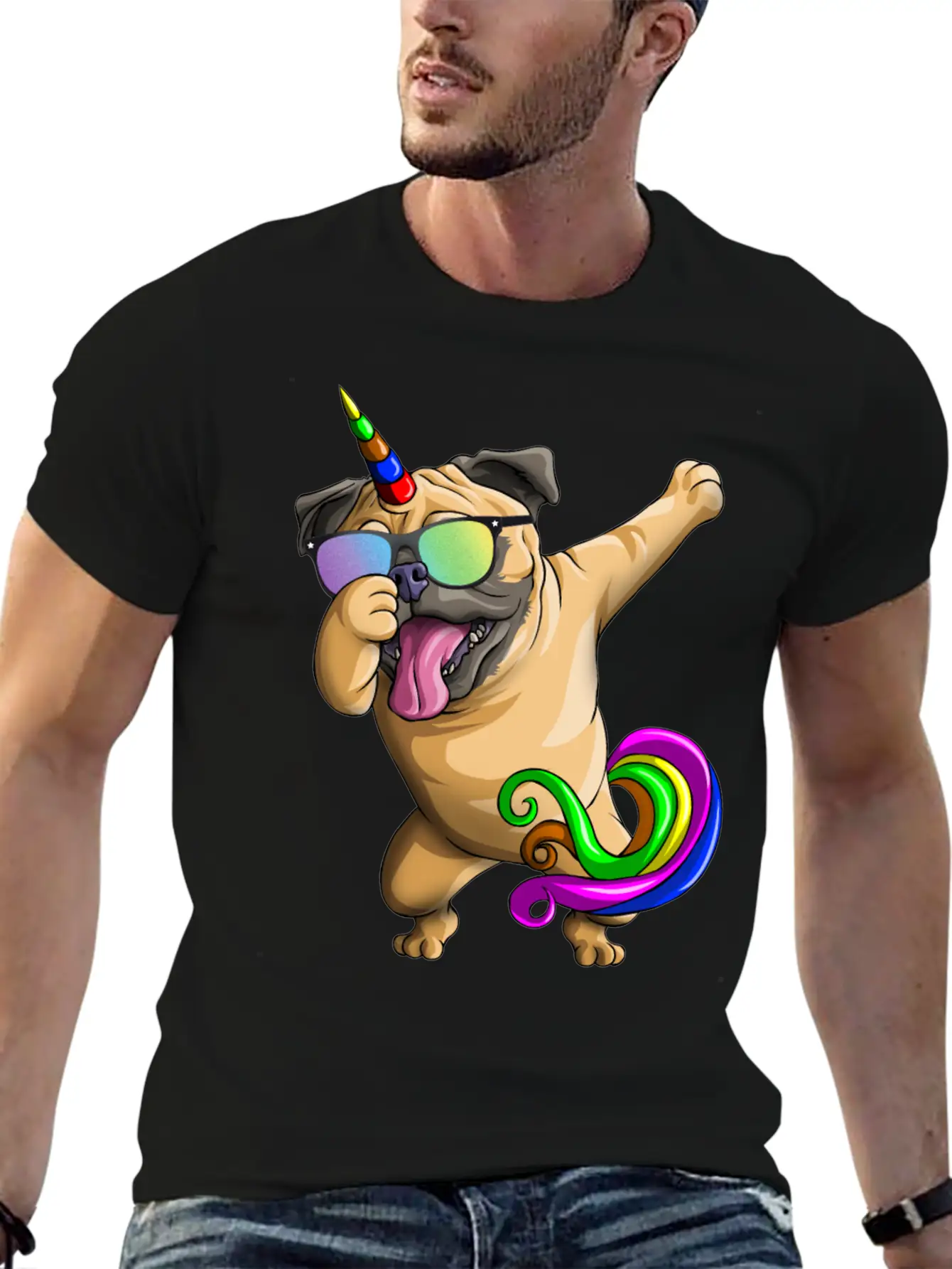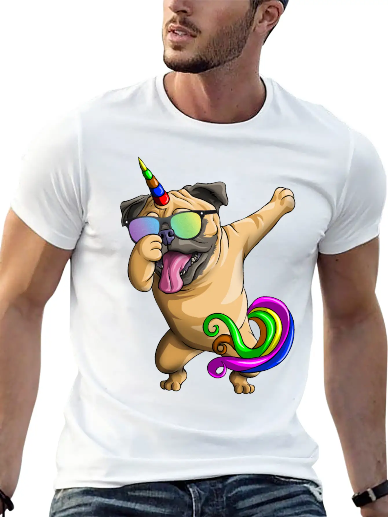 Dabbing Pugicorn Funny Pug Lover Boys Girls Dab Stylish Everyday T-Shirt – Unisex Basic Cotton Tee
