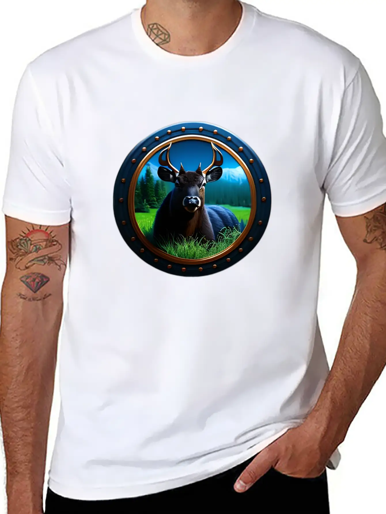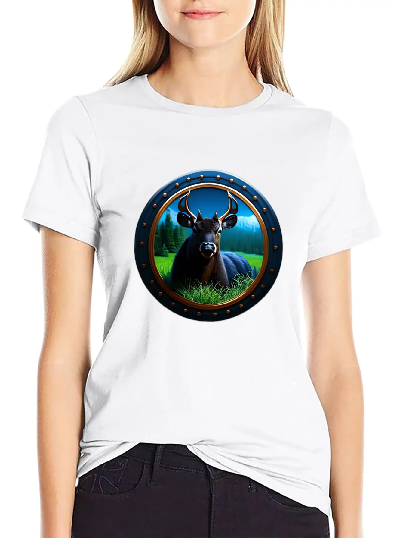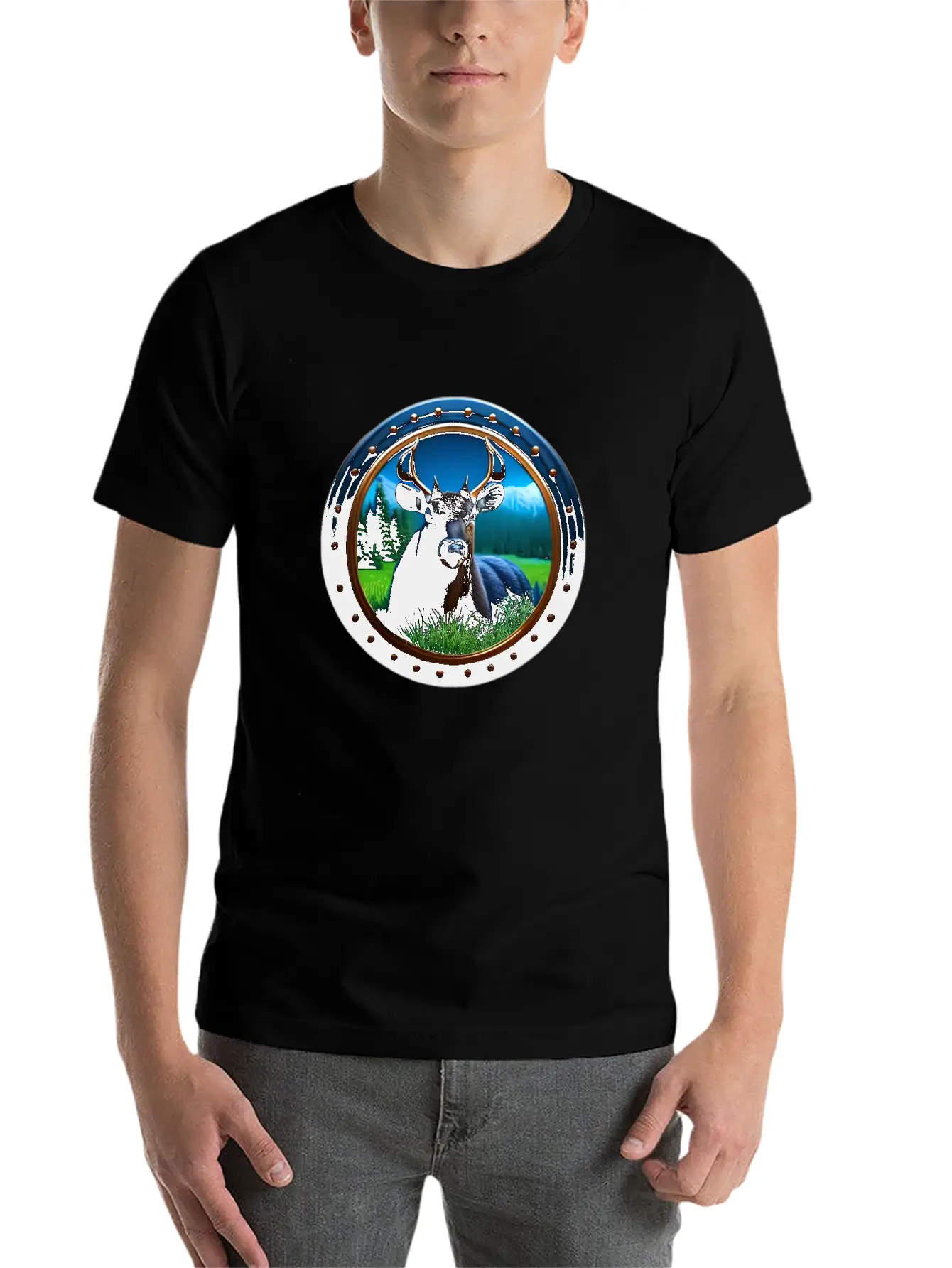 Deer In Meadow Classic Crew Neck Graphic Tee – Everyday Minimal Look