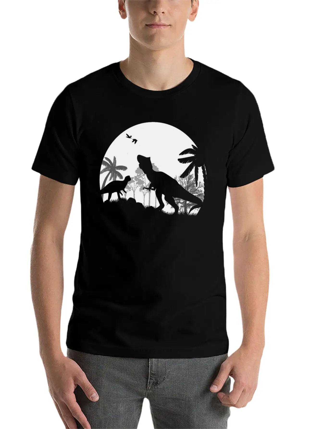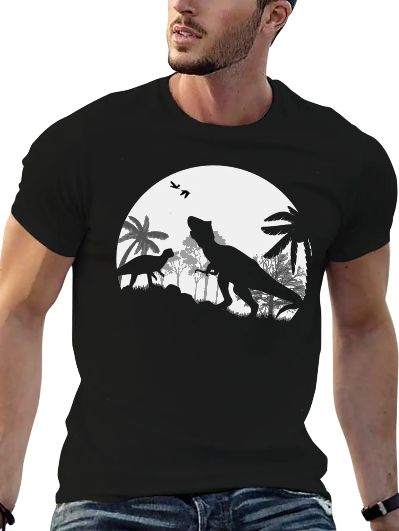 This shirt showcases the Dino night in a sleek and subtle way. A must-have for fans of timeless design. Pure cotton feel.