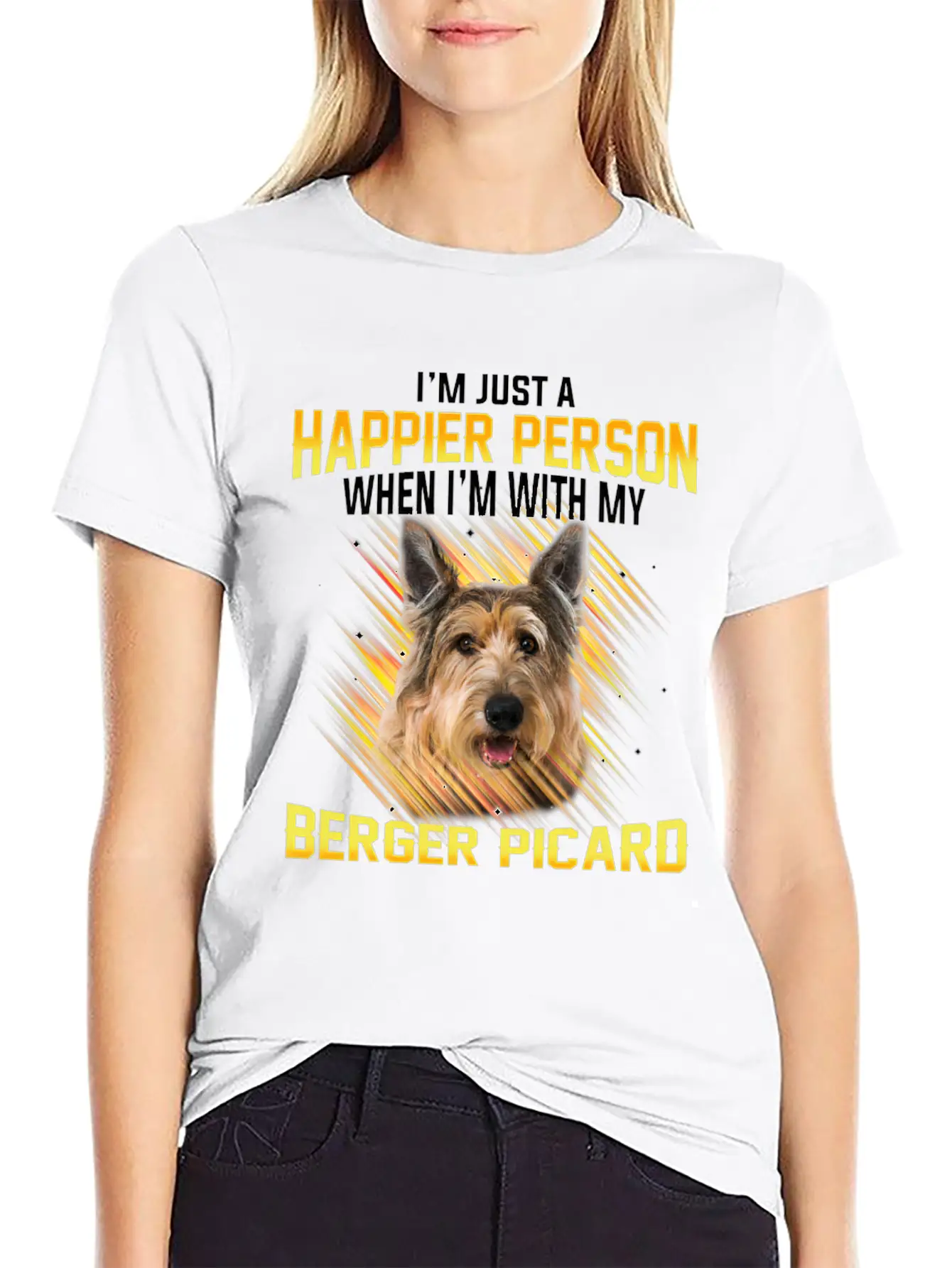 Dog Berger Picard Im Just A Happier Person Basic Graphic T-Shirt – Daily Comfort In Soft Cotton