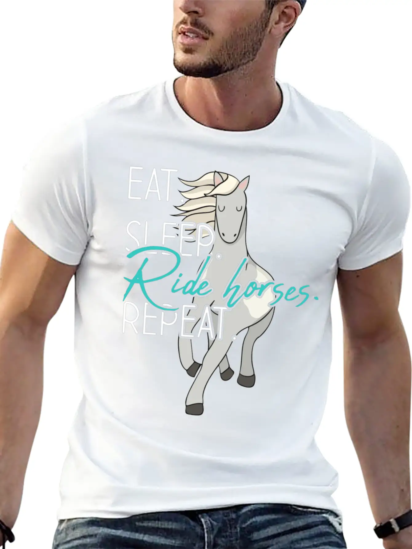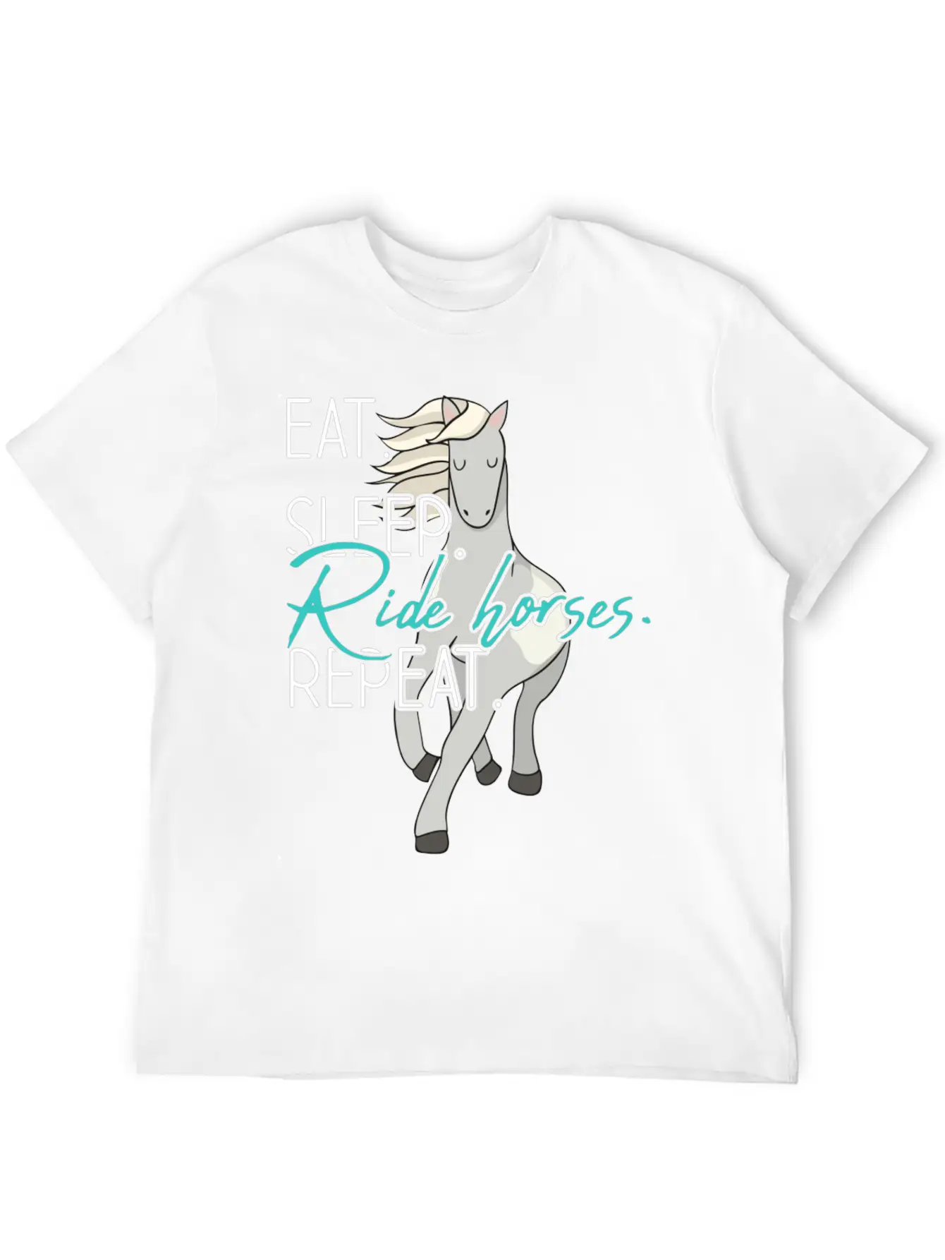 This T-shirt features a clean and artistic depiction of the Eat Sleep Ride Horses Repeat Funny Equestrian Gift, perfect for everyday casual wear. Soft, breathable cotton.