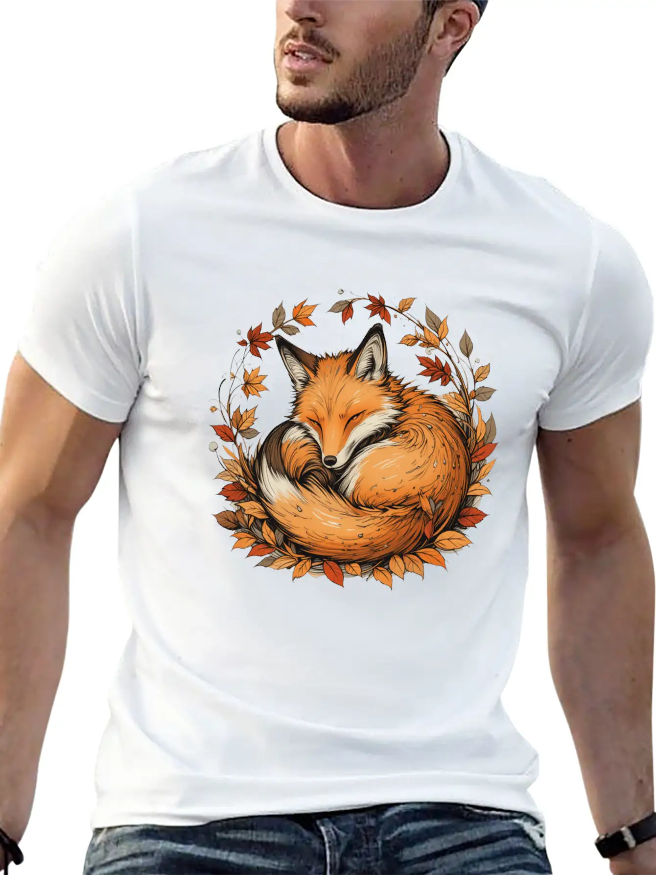 Fox In Autumn Leaves Basic Graphic T-Shirt – Daily Comfort In Soft Cotton