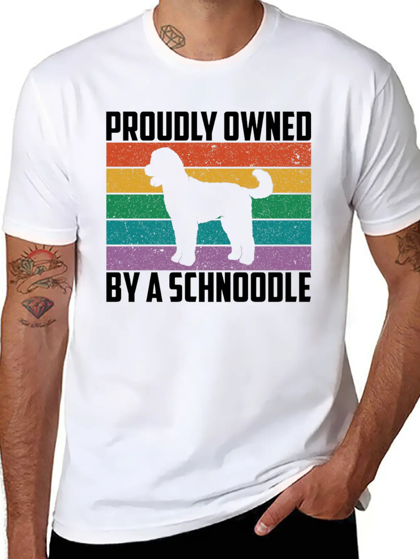 For those who love the Funny Dog Owner Proudly Owned By A Schnoodle print or just want something different, this shirt makes a great gift or daily essential.