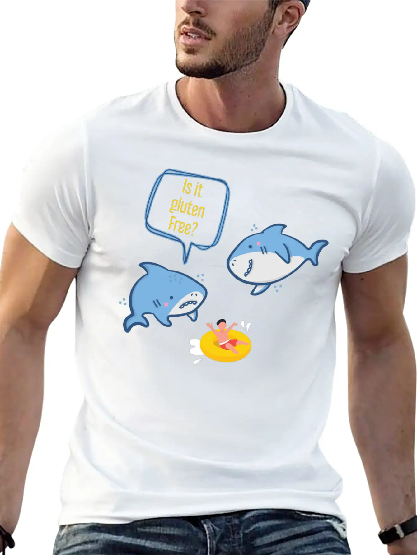 The Funny Shark Gift Animal Gluten Free design adds character to this everyday tee. Easy to pair with jeans, shorts, or layered looks.