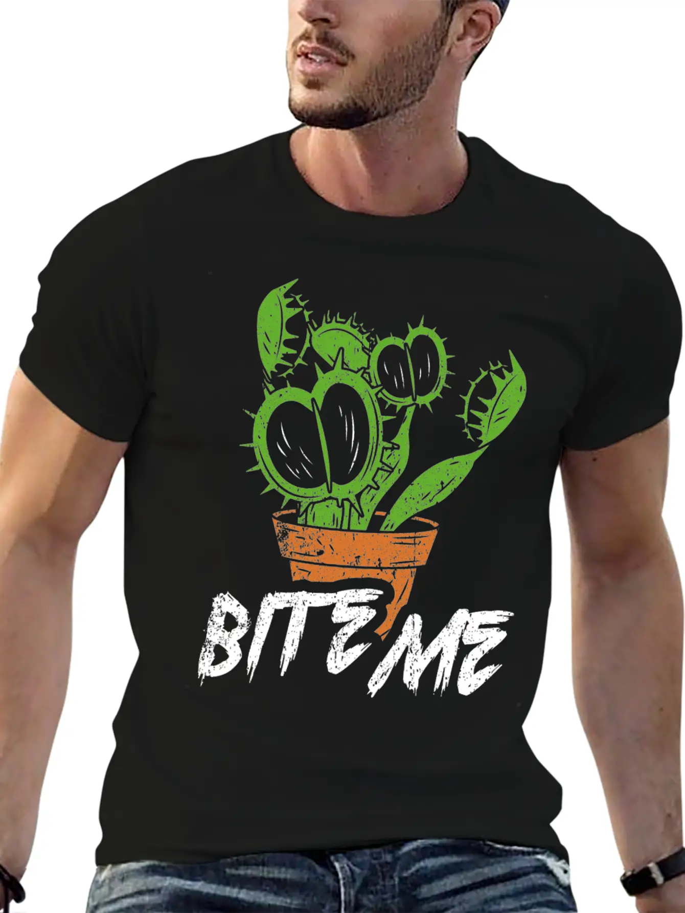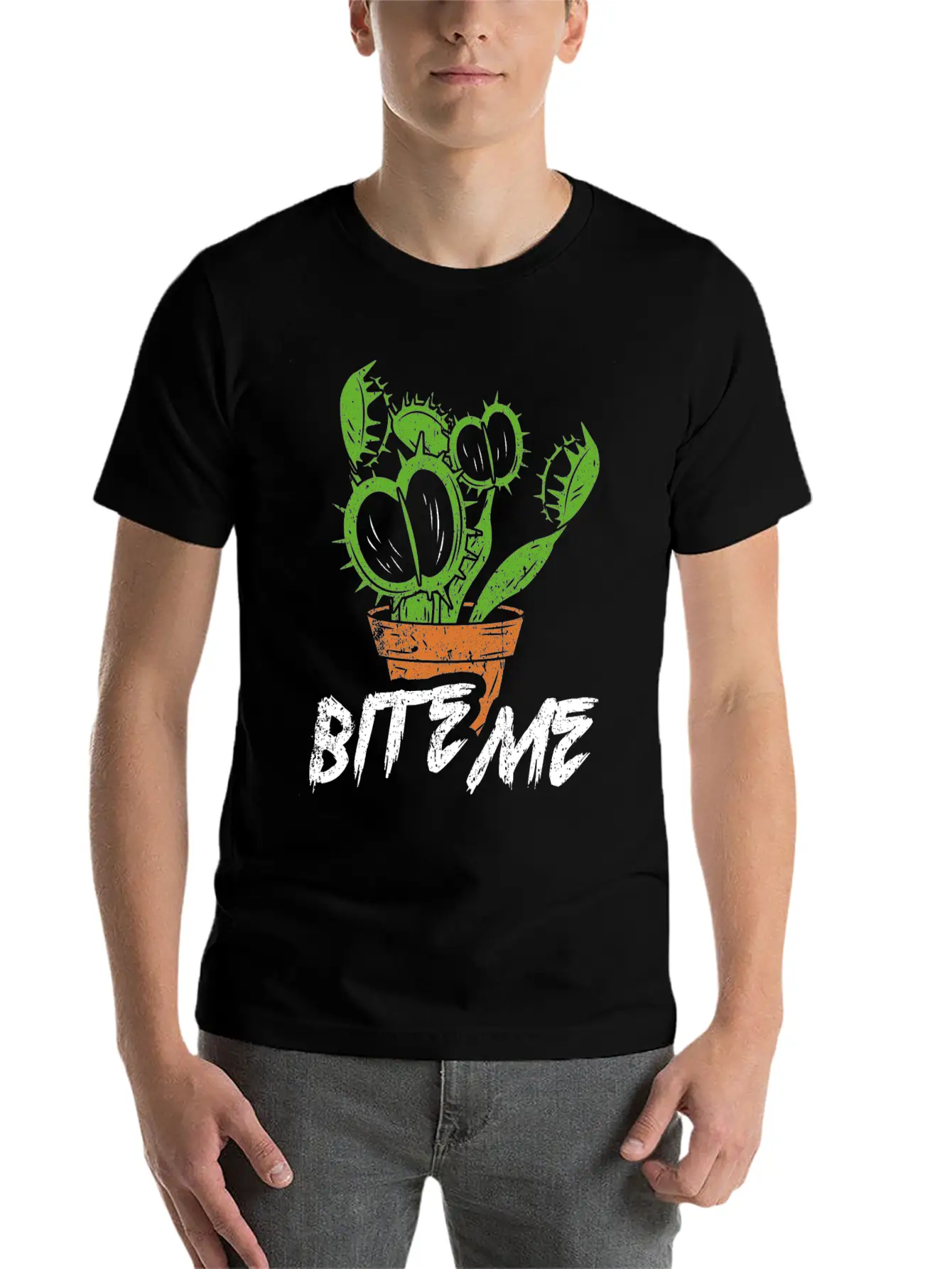 Funny Succulent Design Quote Bite Me Carnivorous Simple Everyday Graphic Tee – Lightweight Summer Wear