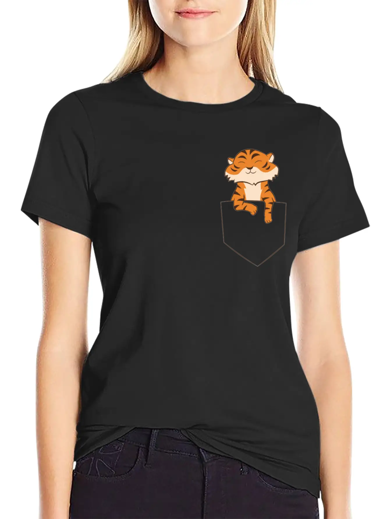 Funny Tiger In A Pocket Cute Tiger Basic Graphic T-Shirt – Daily Comfort In Soft Cotton