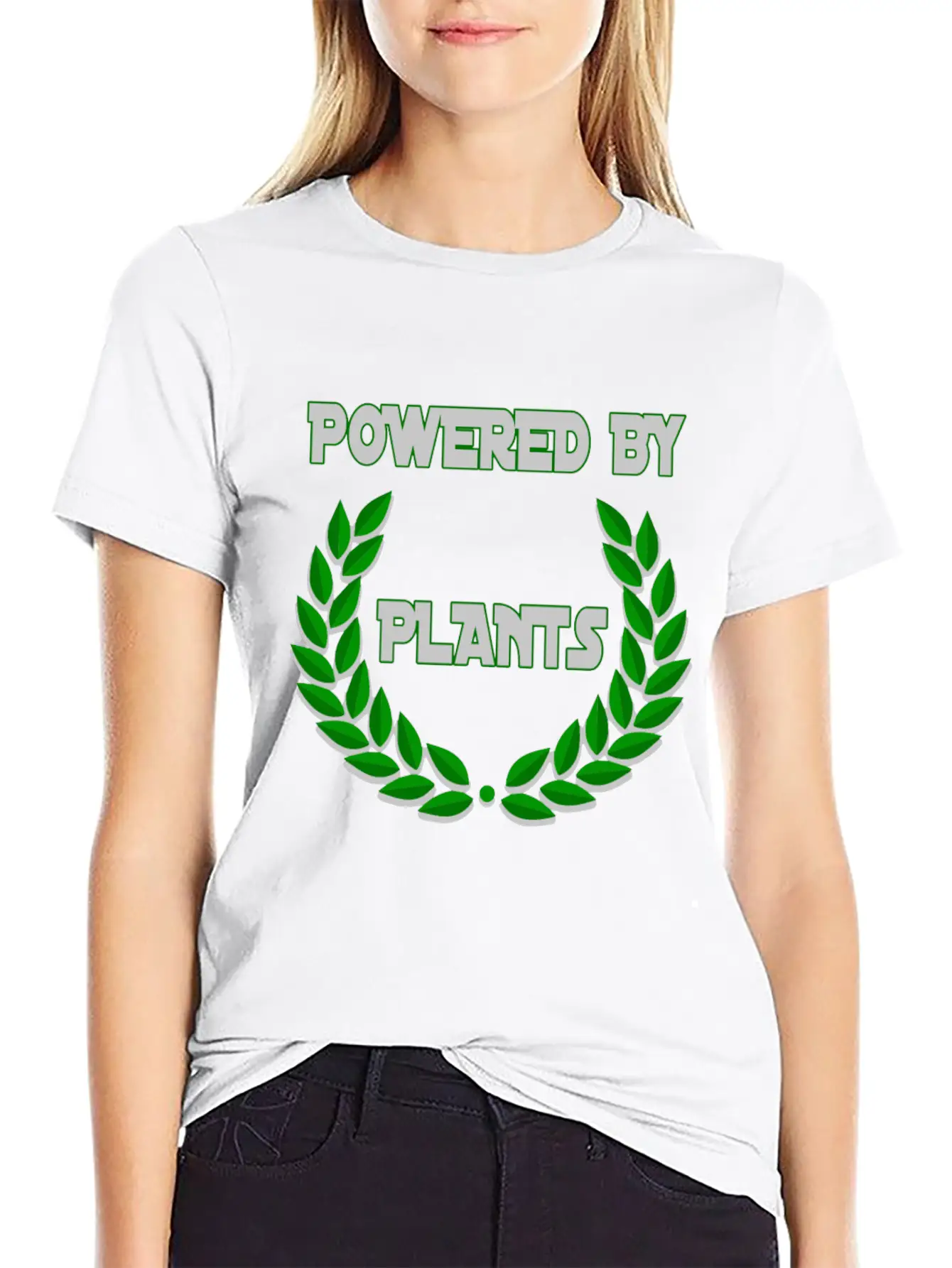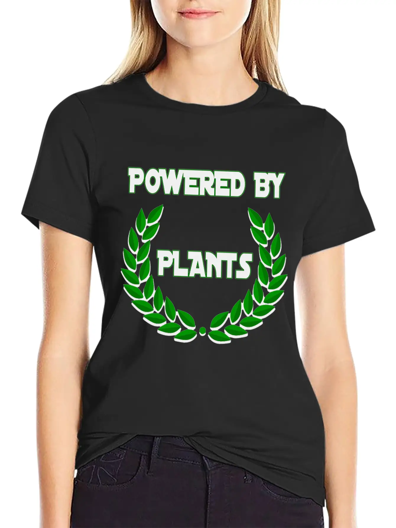 Funny Vegan Gift Powered By Plants Basic Graphic T-Shirt – Daily Comfort In Soft Cotton