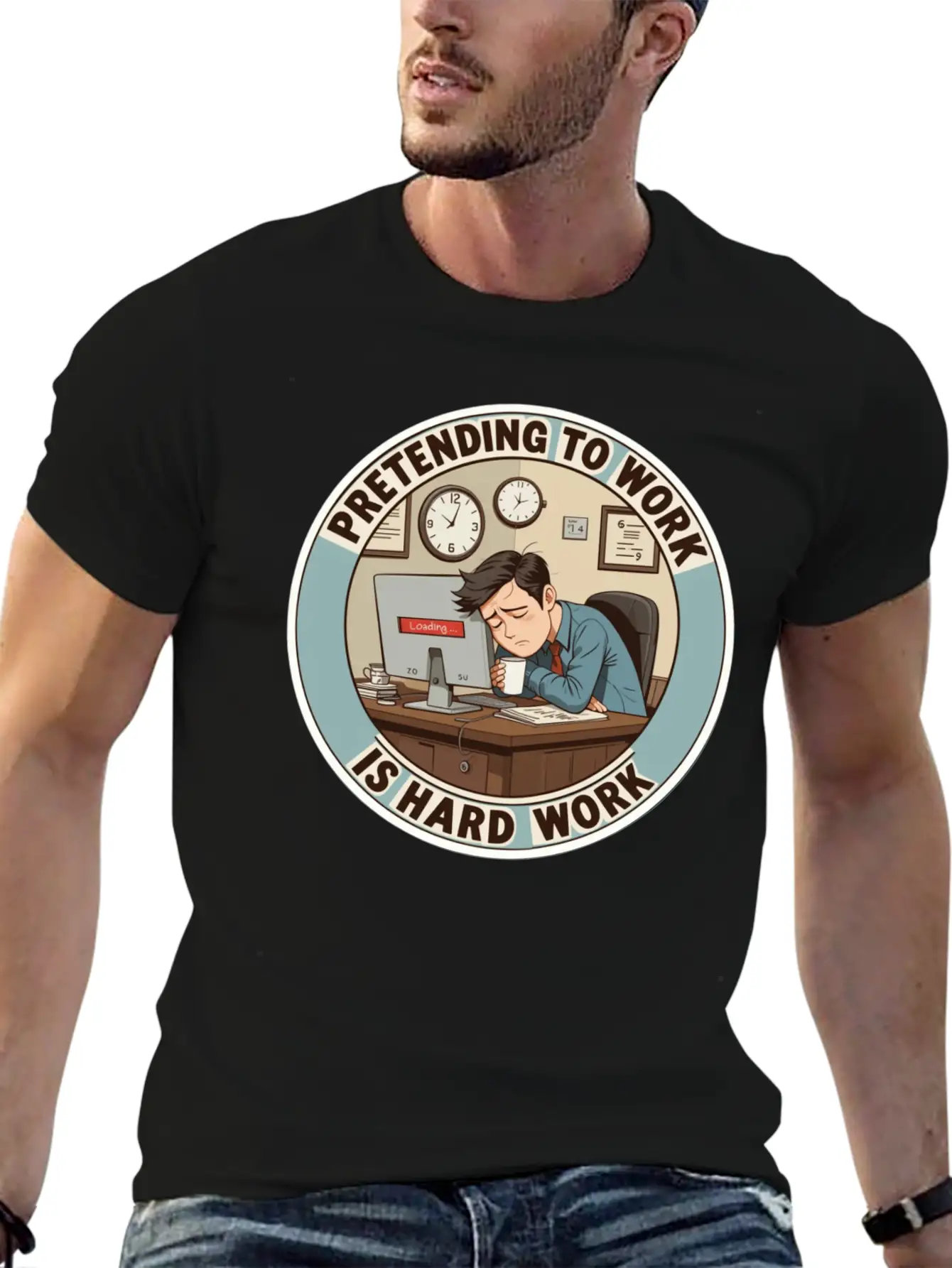 Funny Work Shirt – Pretending To Work Is Hard Work Basic Graphic T-Shirt – Daily Comfort In Soft Cotton