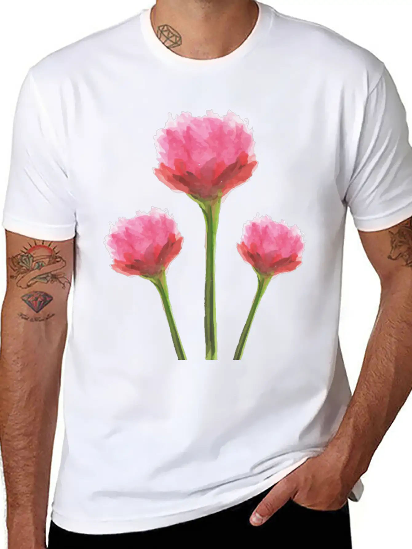 Stylishly simple, this shirt captures the essence of the Gentle Pink Watercolor Flowers in a clean and wearable form.