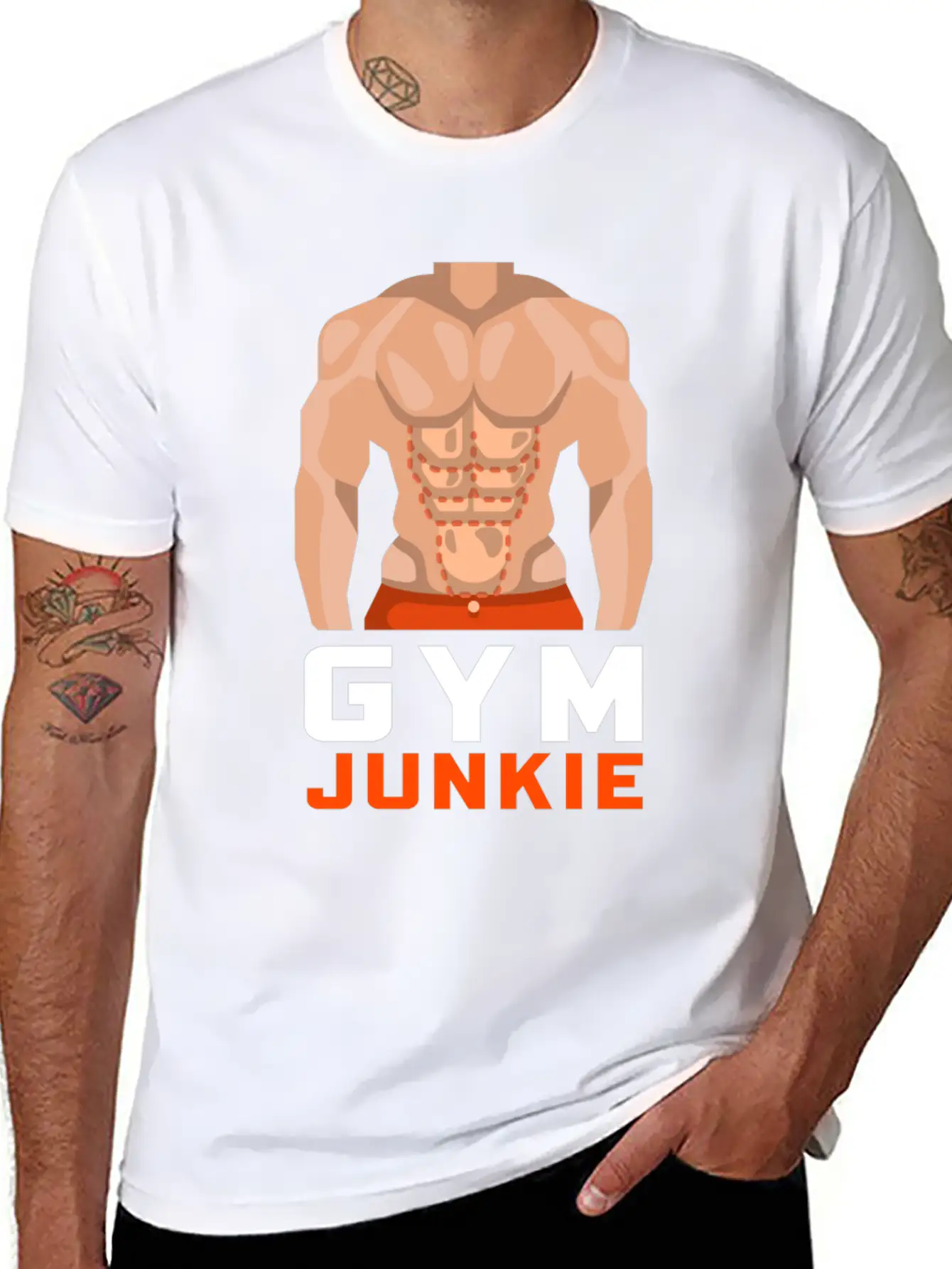 The Gym Junkie is the centerpiece of this comfy tee, combining a classic cut with modern design.