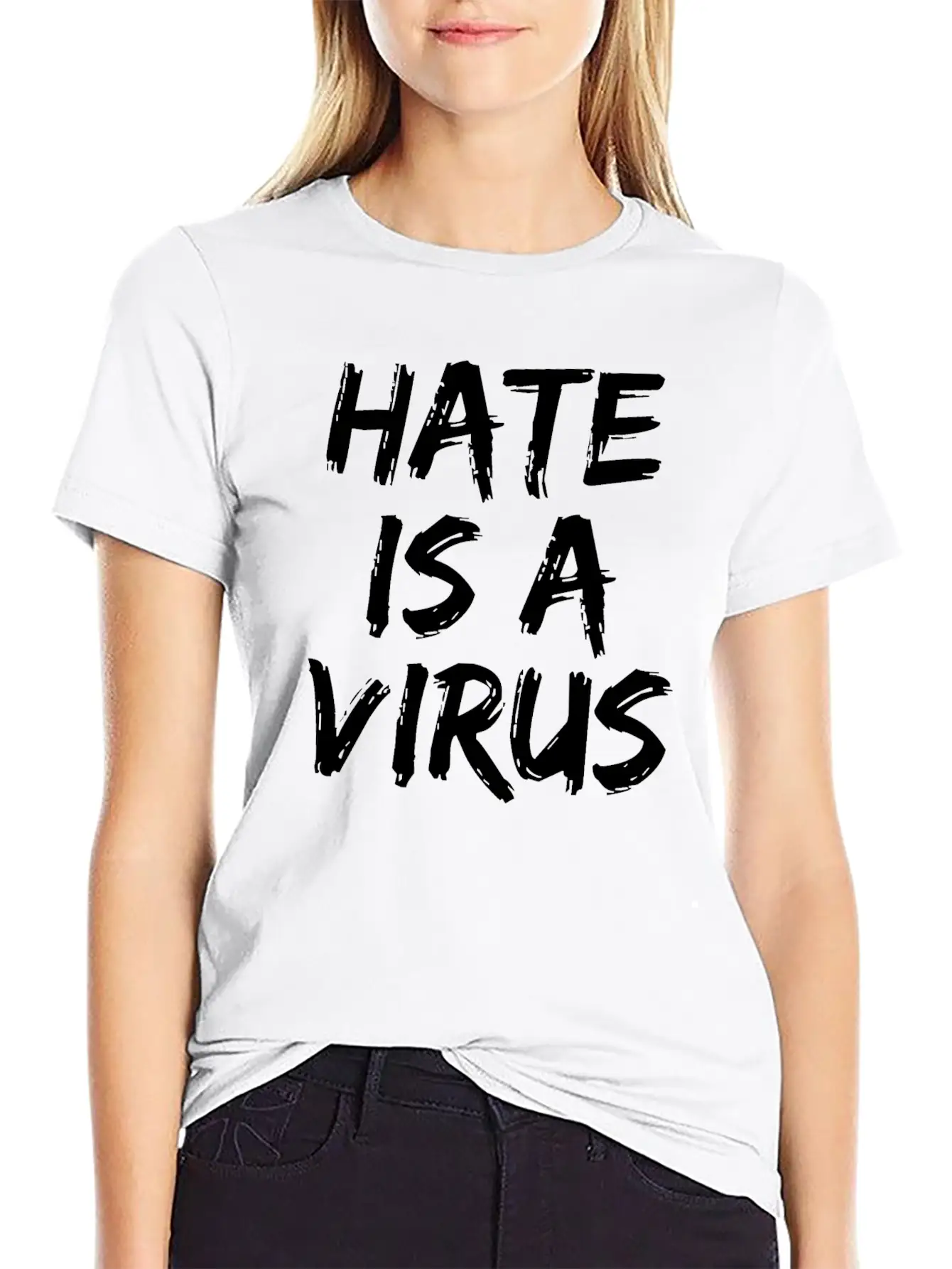 The Hate Is A Virus is the centerpiece of this comfy tee, combining a classic cut with modern design.