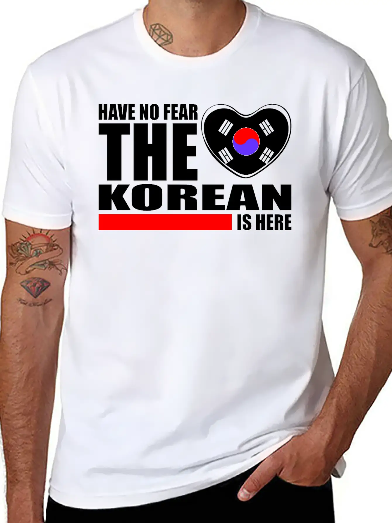 Celebrate your love for the Have No Fear The Korean Is Here with this versatile unisex T-shirt. Classic fit, breathable cotton fabric.
