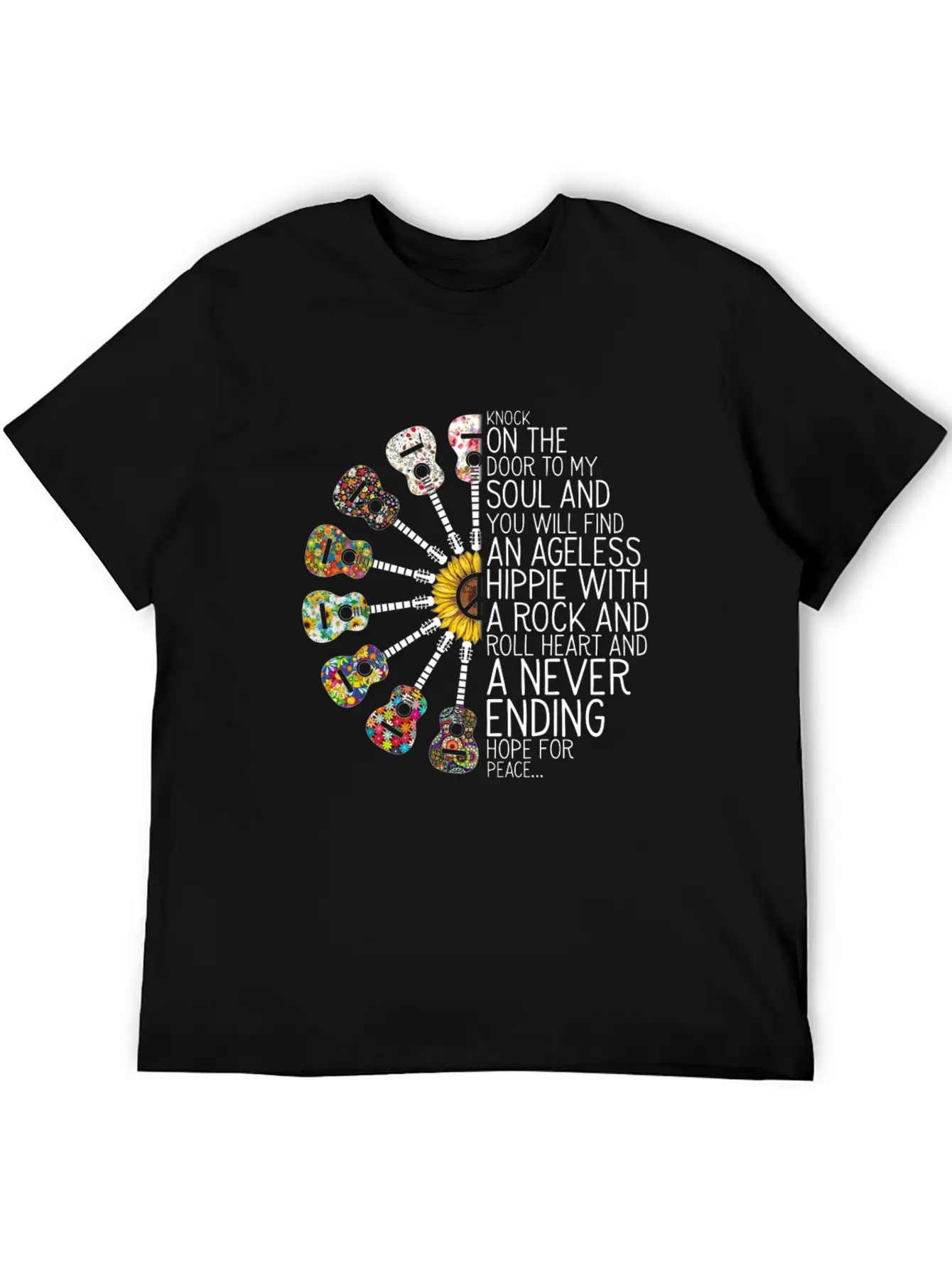 Hippie Peace Rock And Roll Never Ending Stylish Everyday T-Shirt – Unisex Basic Cotton Tee