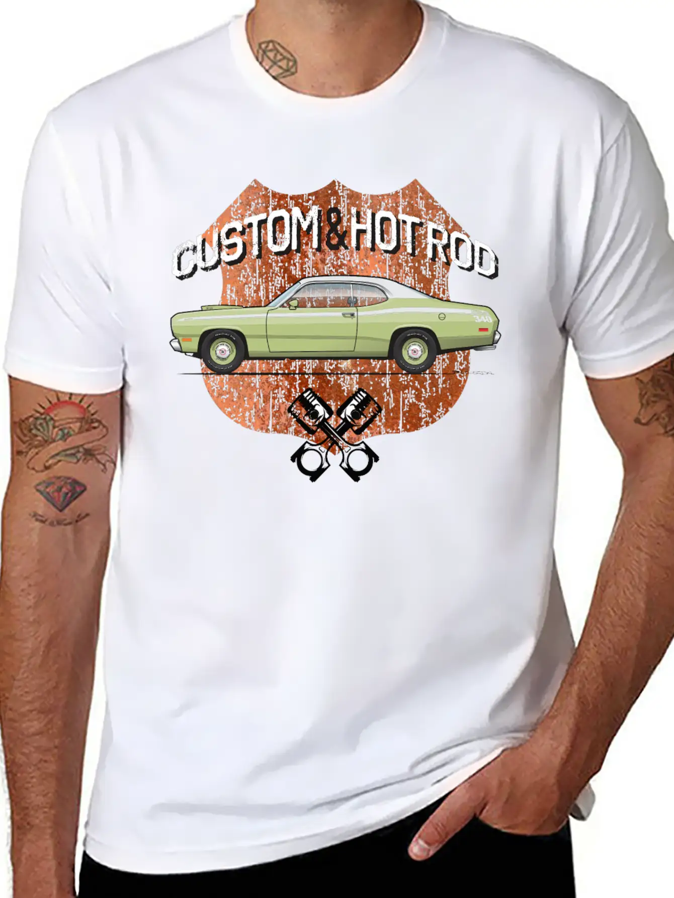 The Hot Rod Mist Green is the centerpiece of this comfy tee, combining a classic cut with modern design.
