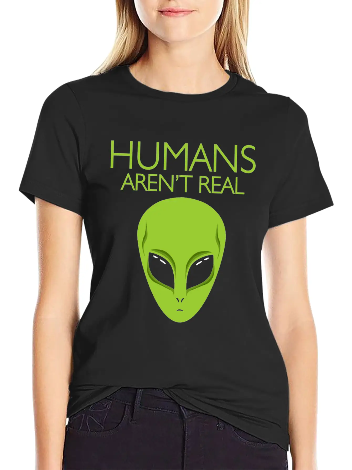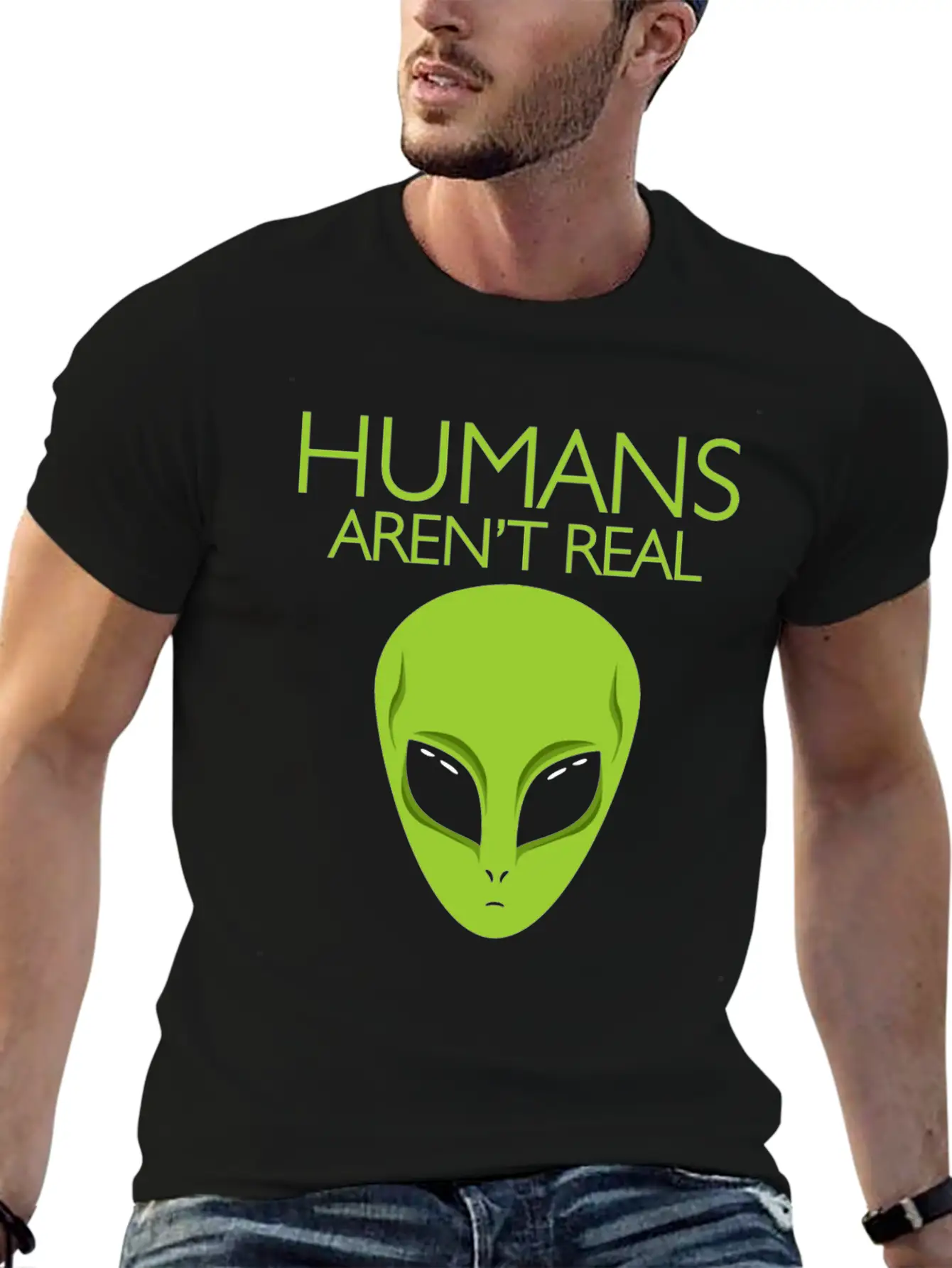 Humans Arent Real Alien Believe Alien Head Tee Stylish Everyday T-Shirt – Unisex Basic Cotton Tee