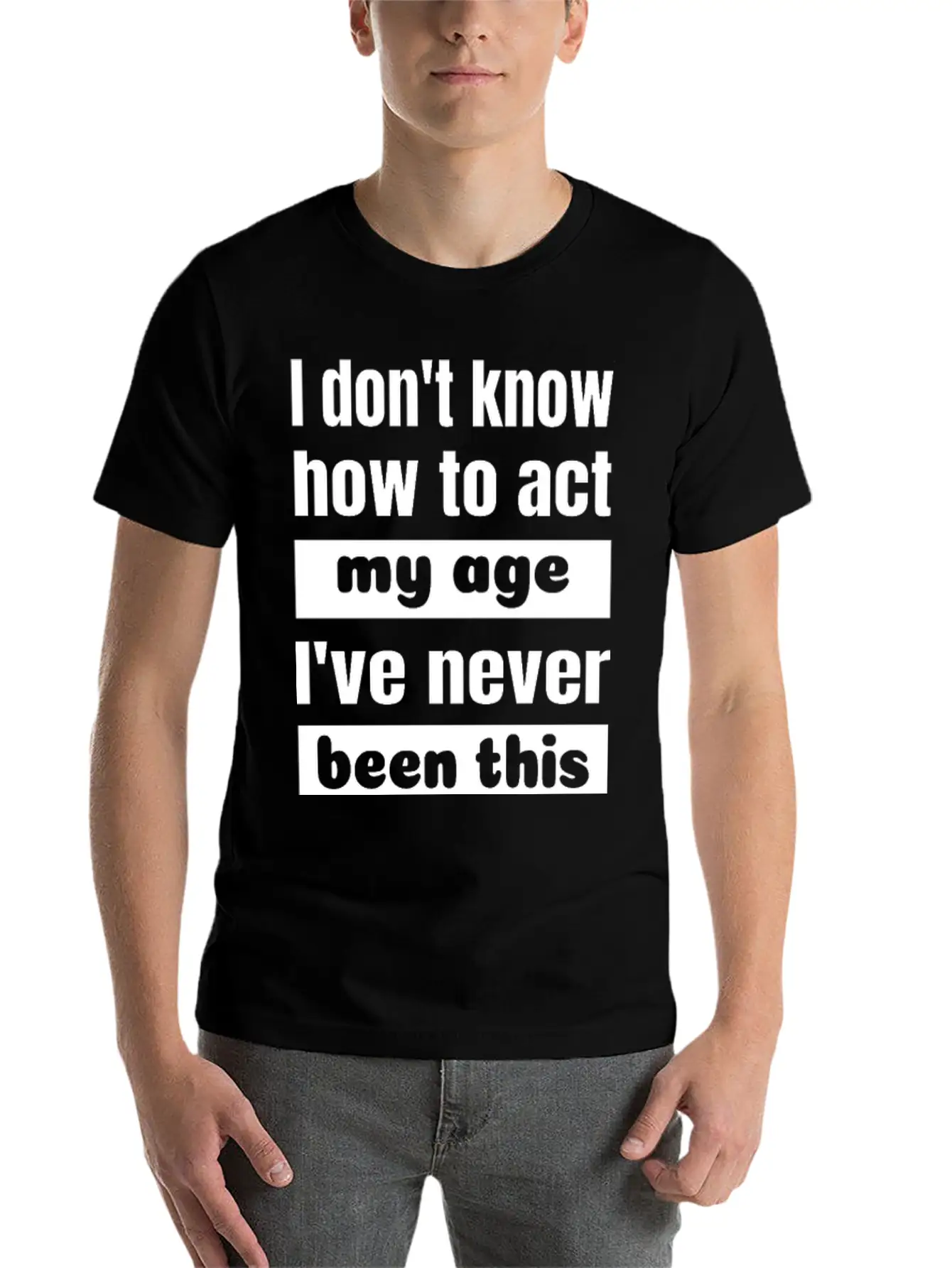 For those who love the I don't know how to act my age never been this old or just want something different, this shirt makes a great gift or daily essential.
