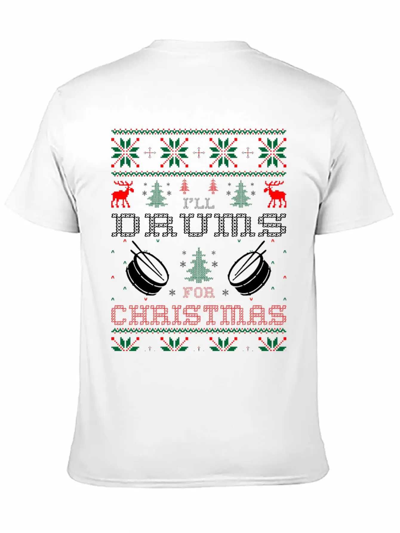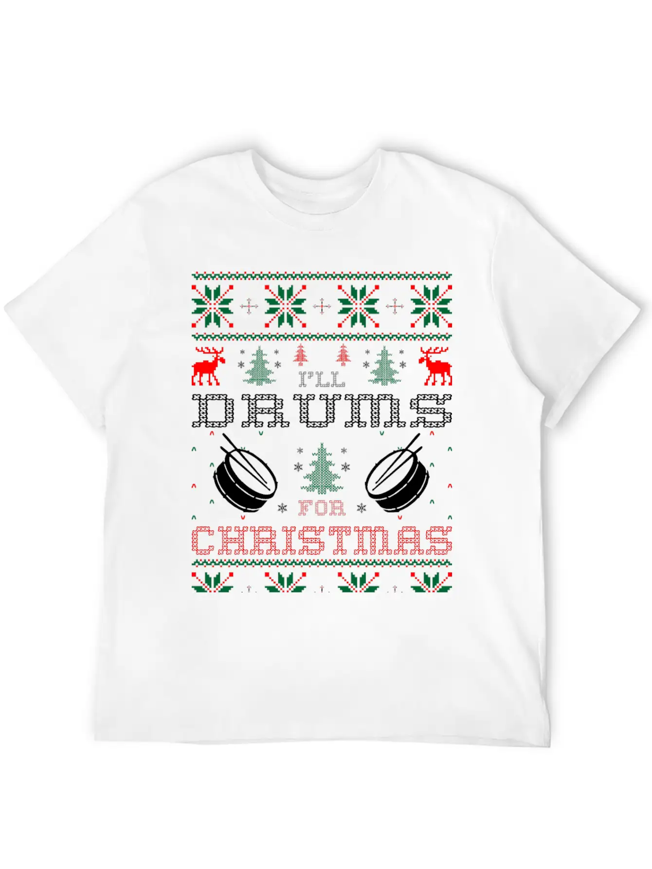 I Will Drums For Christmas Ugly Sweater Tshirt Stylish Everyday T-Shirt – Unisex Basic Cotton Tee