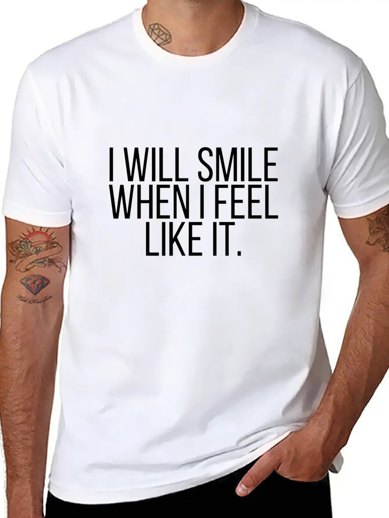 Stylishly simple, this shirt captures the essence of the I will smile when I feel like it. in a clean and wearable form.