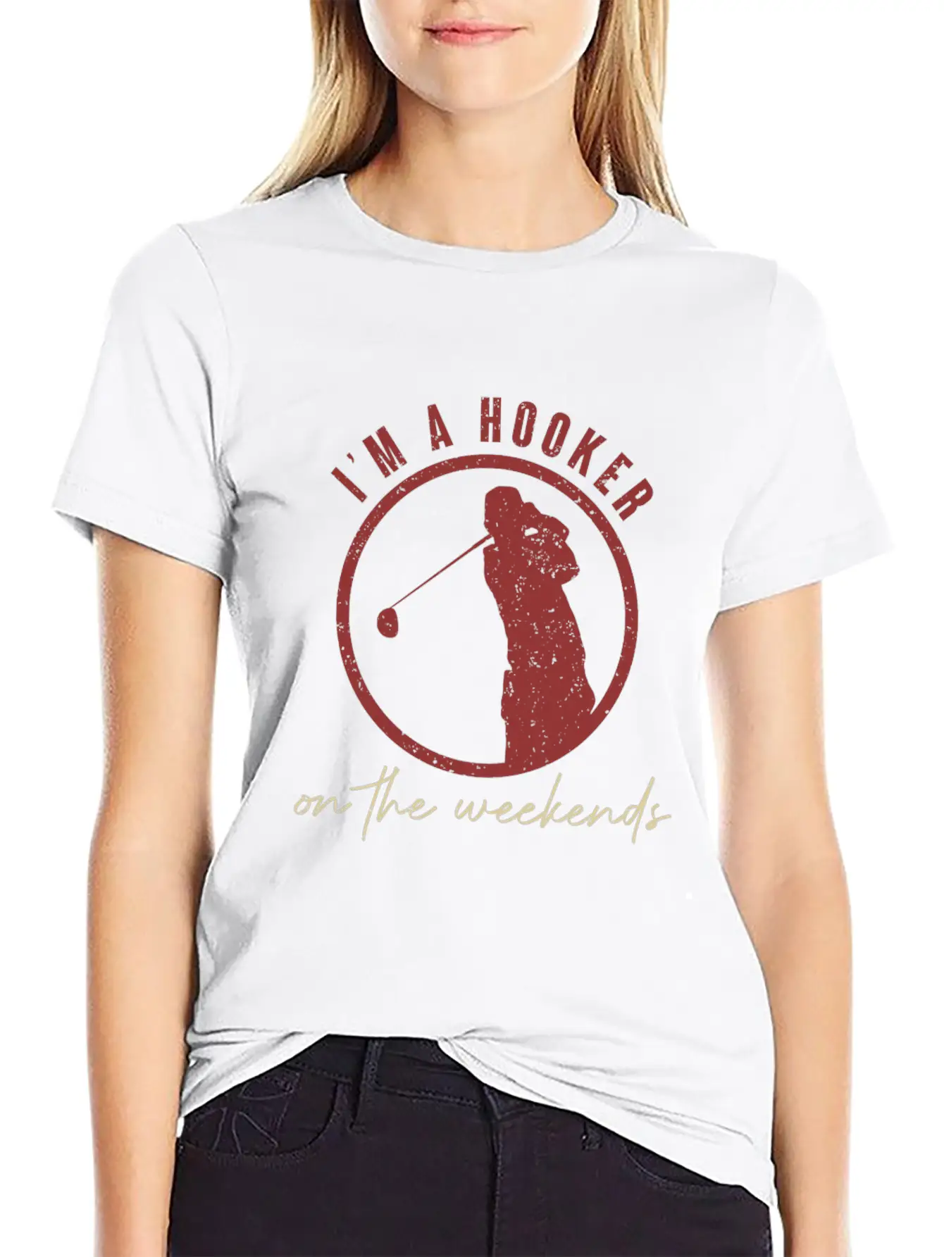 This T-shirt features a clean and artistic depiction of the I'm A Hooker On The Weekends Golf Golfer Jokes, perfect for everyday casual wear. Soft, breathable cotton.
