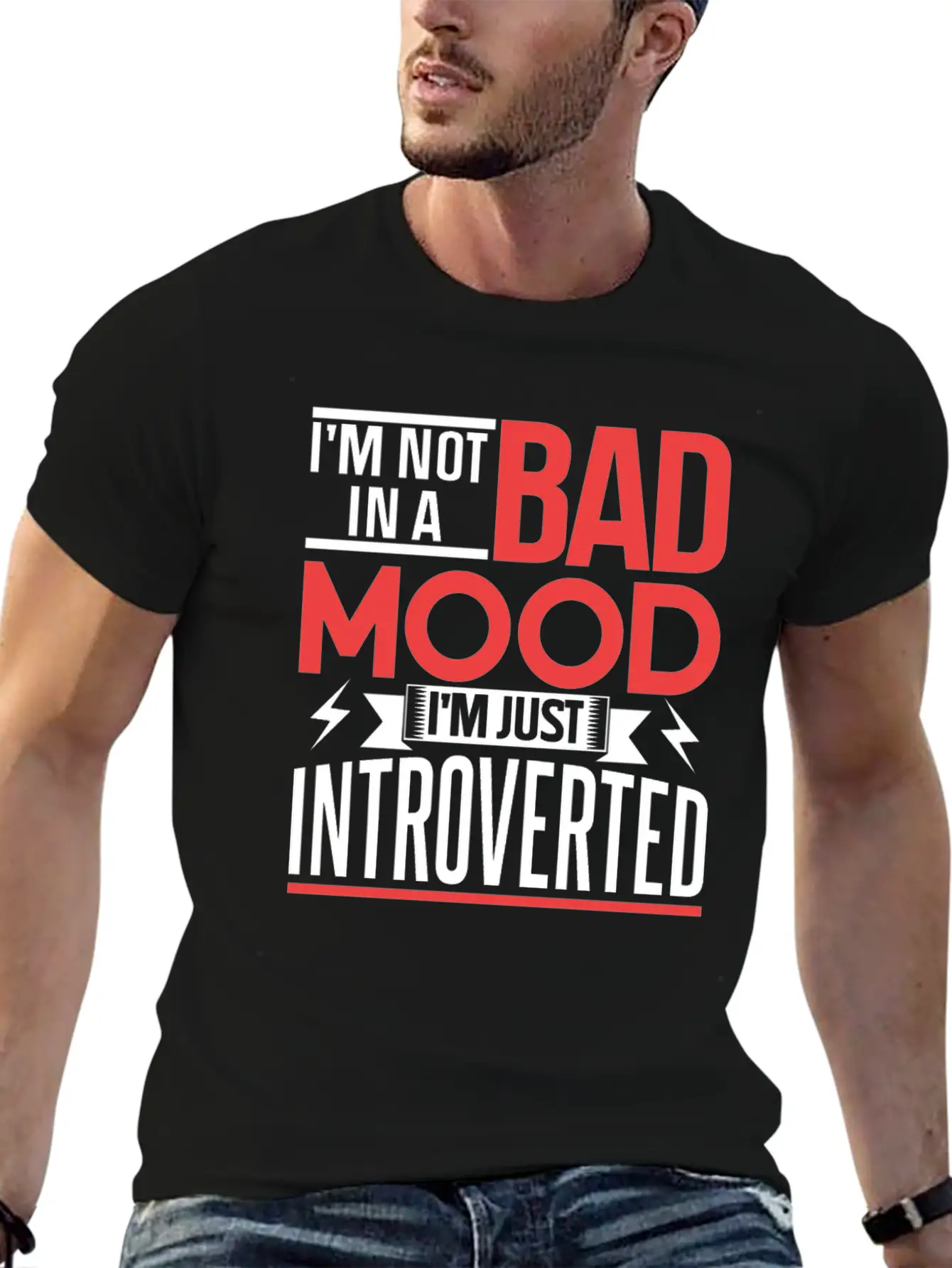 This T-shirt features a clean and artistic depiction of the I'm Not In A Bad Mood I'm Just Introverted Shy, perfect for everyday casual wear. Soft, breathable cotton.