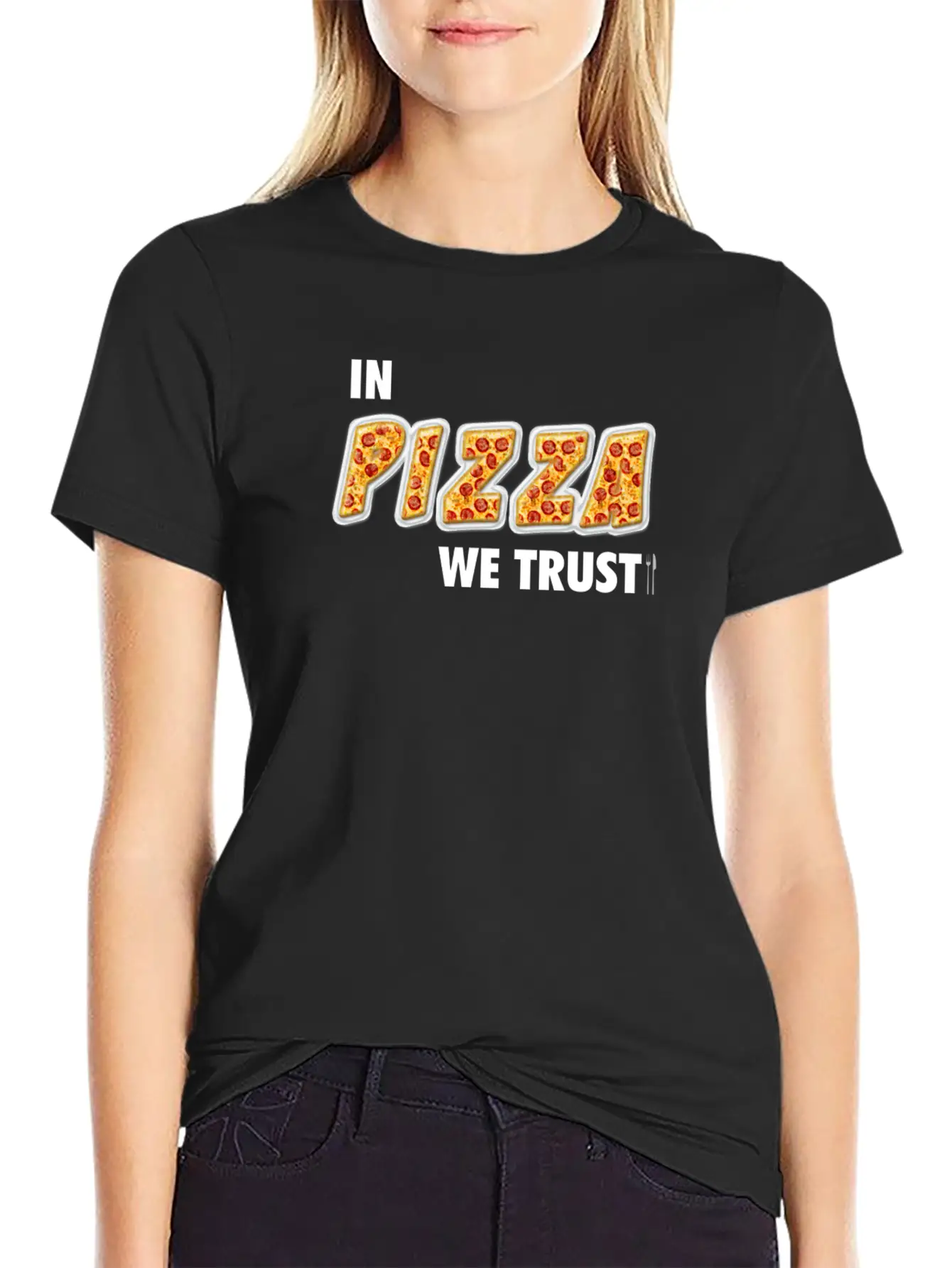 Simple, stylish, and themed with the in pizza we trust, this T-shirt is perfect for adding personality to your outfit. Soft cotton touch.