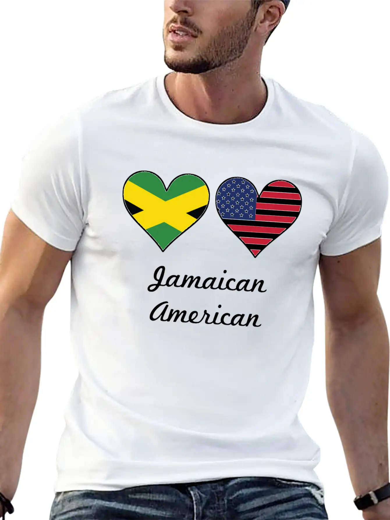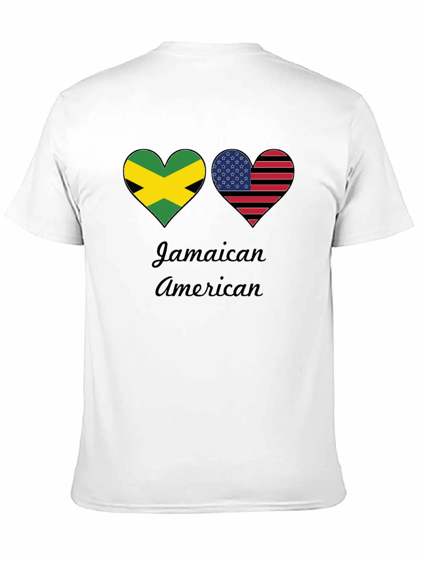 This shirt showcases the Jamaican American Flag Hearts in a sleek and subtle way. A must-have for fans of timeless design. Pure cotton feel.
