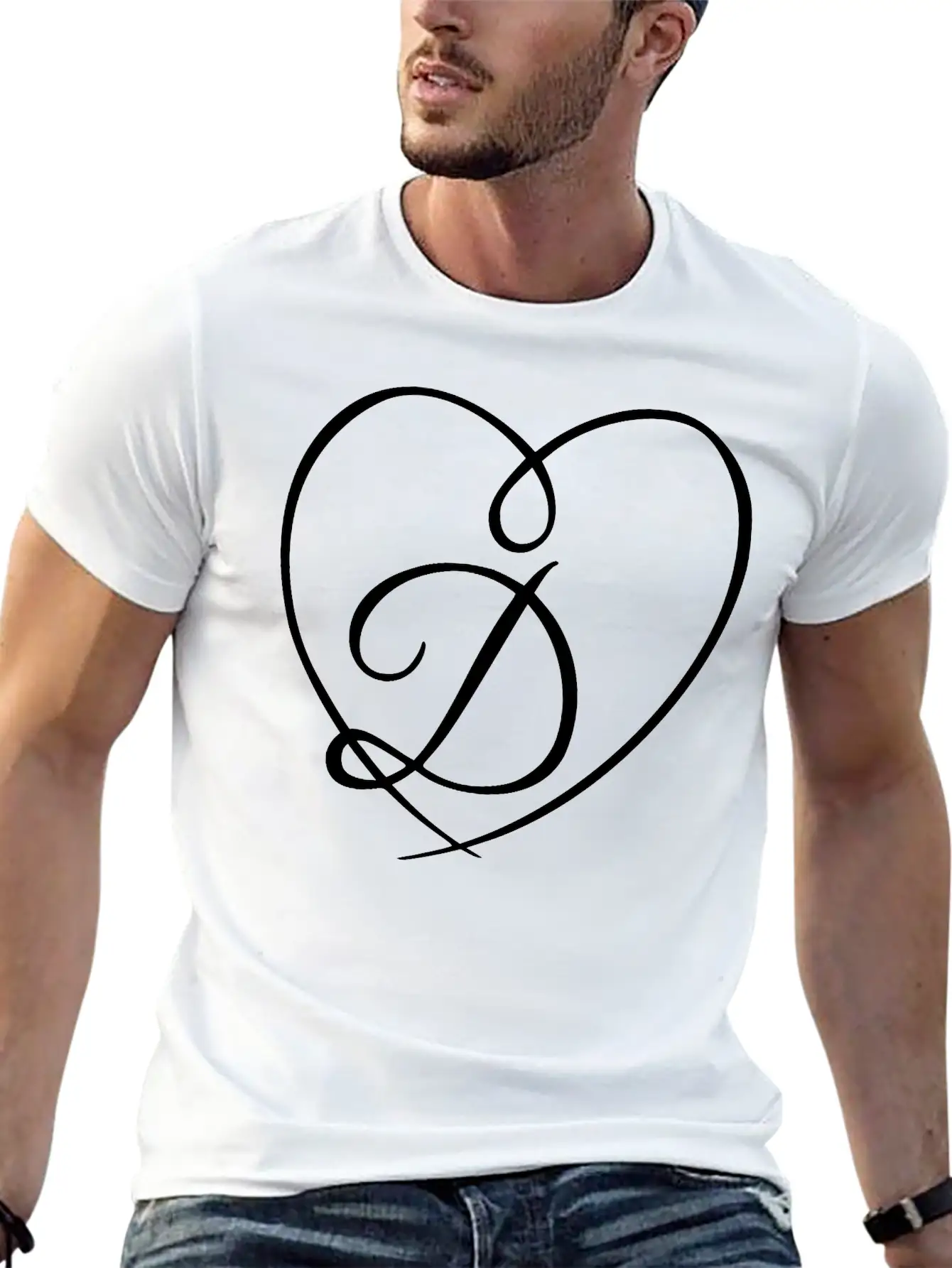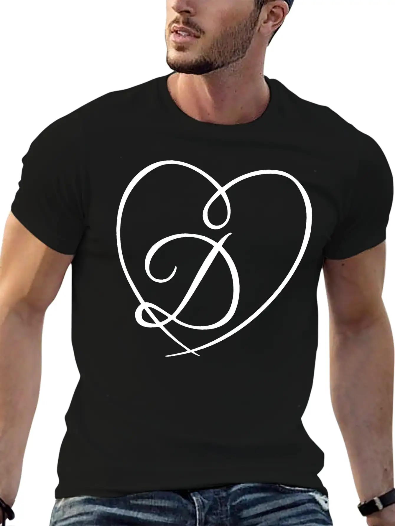 Celebrate your love for the Letter D Heart Calligraphy with this versatile unisex T-shirt. Classic fit, breathable cotton fabric.